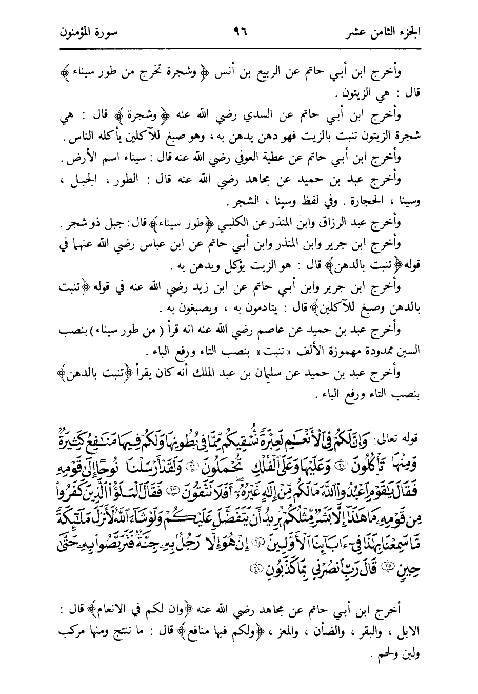 وَأخرج ابْن جرير وَابْن الْمُنْذر وَابْن أبي حَاتِم عَن ابْن عَبَّاس رَضِي الله عَنْهُمَا فِي قَوْله {تنْبت بالدهن} قَالَ: هُوَ الزَّيْت يُؤْكَل ويدهن بِهِ