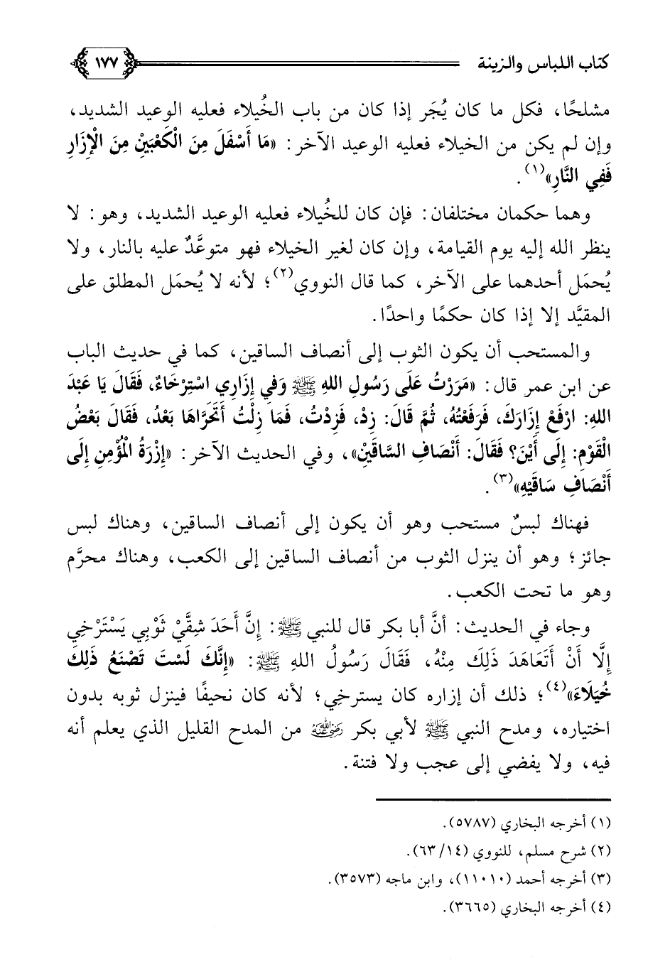 فهناك لبسٌ مستحب وهو أن يكون إلى أنصاف الساقين، وهناك لبس جائز؛ وهو أن ينزل الثوب من أنصاف الساقين إلى الكعب، وهناك محرَّم وهو ما تحت الكعب.