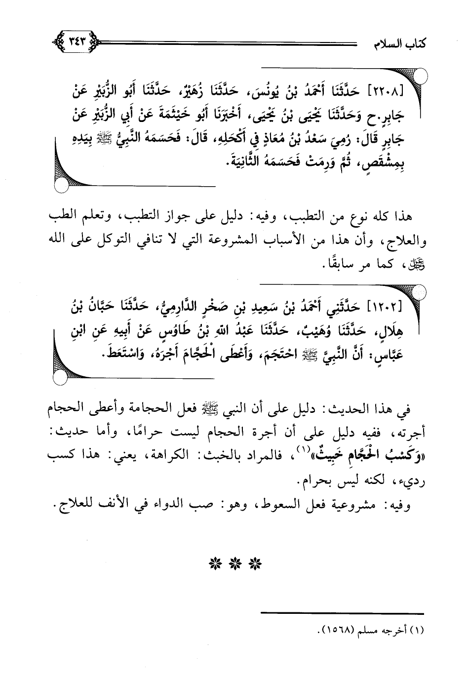 [١٢٠٢] حَدَّثَنِي أَحْمَدُ بْنُ سَعِيدِ بْنِ صَخْرٍ الدَّارِمِيُّ، حَدَّثَنَا حَبَّانُ بْنُ هِلَالٍ، حَدَّثَنَا وُهَيْبٌ، حَدَّثَنَا عَبْدُ اللهِ بْنُ طَاوُسٍ عَنْ أَبِيهِ عَنِ ابْنِ عَبَّاسٍ: أَنَّ النَّبِيَّ صلى الله عليه وسلم احْتَجَمَ، وَأَعْطَى الْحَجَّامَ أَجْرَهُ، وَاسْتَعَطَ.