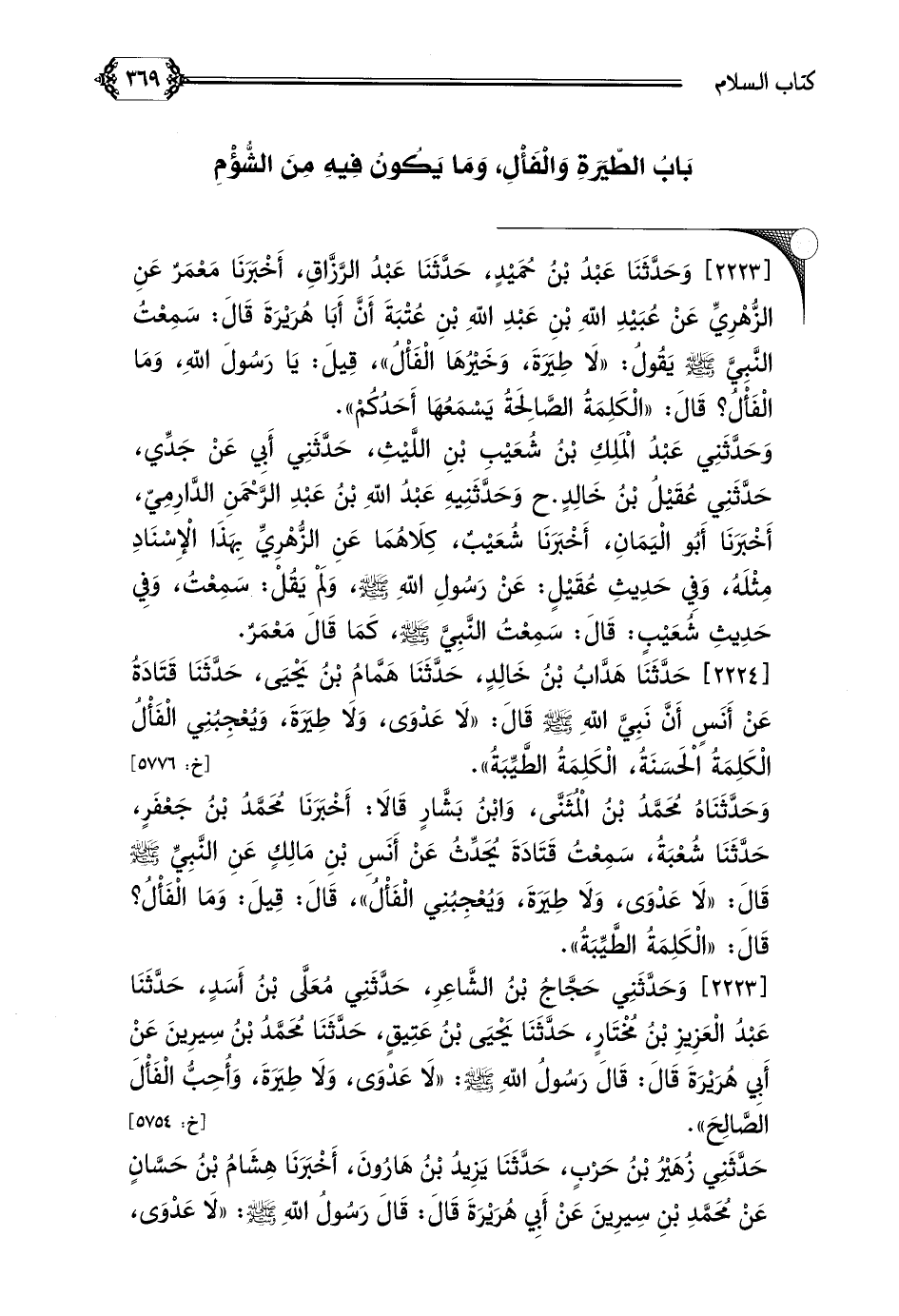 [٢٢٢٤] حَدَّثَنَا هَدَّابُ بْنُ خَالِدٍ، حَدَّثَنَا هَمَّامُ بْنُ يَحْيَى، حَدَّثَنَا قَتَادَةُ عَنْ أَنَسٍ أَنَّ نَبِيَّ اللهِ صلى الله عليه وسلم قَالَ: ((لَا عَدْوَى، وَلَا طِيَرَةَ، وَيُعْجِبُنِي الْفَأْلُ الْكَلِمَةُ الْحَسَنَةُ، الْكَلِمَةُ الطَّيِّبَةُ)).