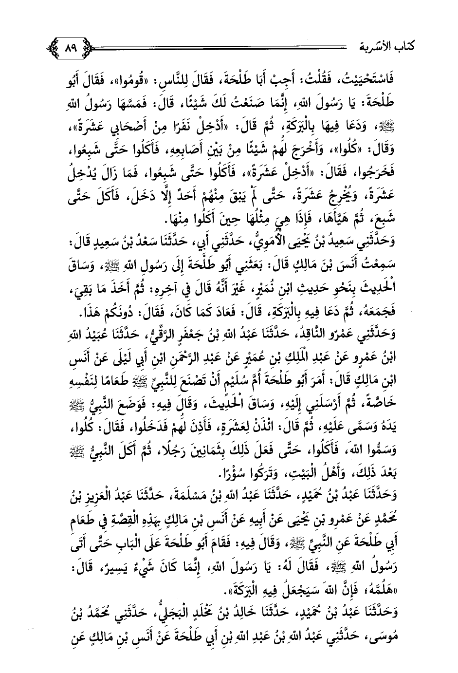 وَحَدَّثَنَا عَبْدُ بْنُ حُمَيْدٍ، حَدَّثَنَا خَالِدُ بْنُ مَخْلَدٍ الْبَجَلِيُّ، حَدَّثَنِي مُحَمَّدُ بْنُ مُوسَى، حَدَّثَنِي عَبْدُ اللَّهِ بْنُ عَبْدِ اللَّهِ بْنِ أَبِي طَلْحَةَ عَنْ أَنَسِ بْنِ مَالِكٍ عَنِ