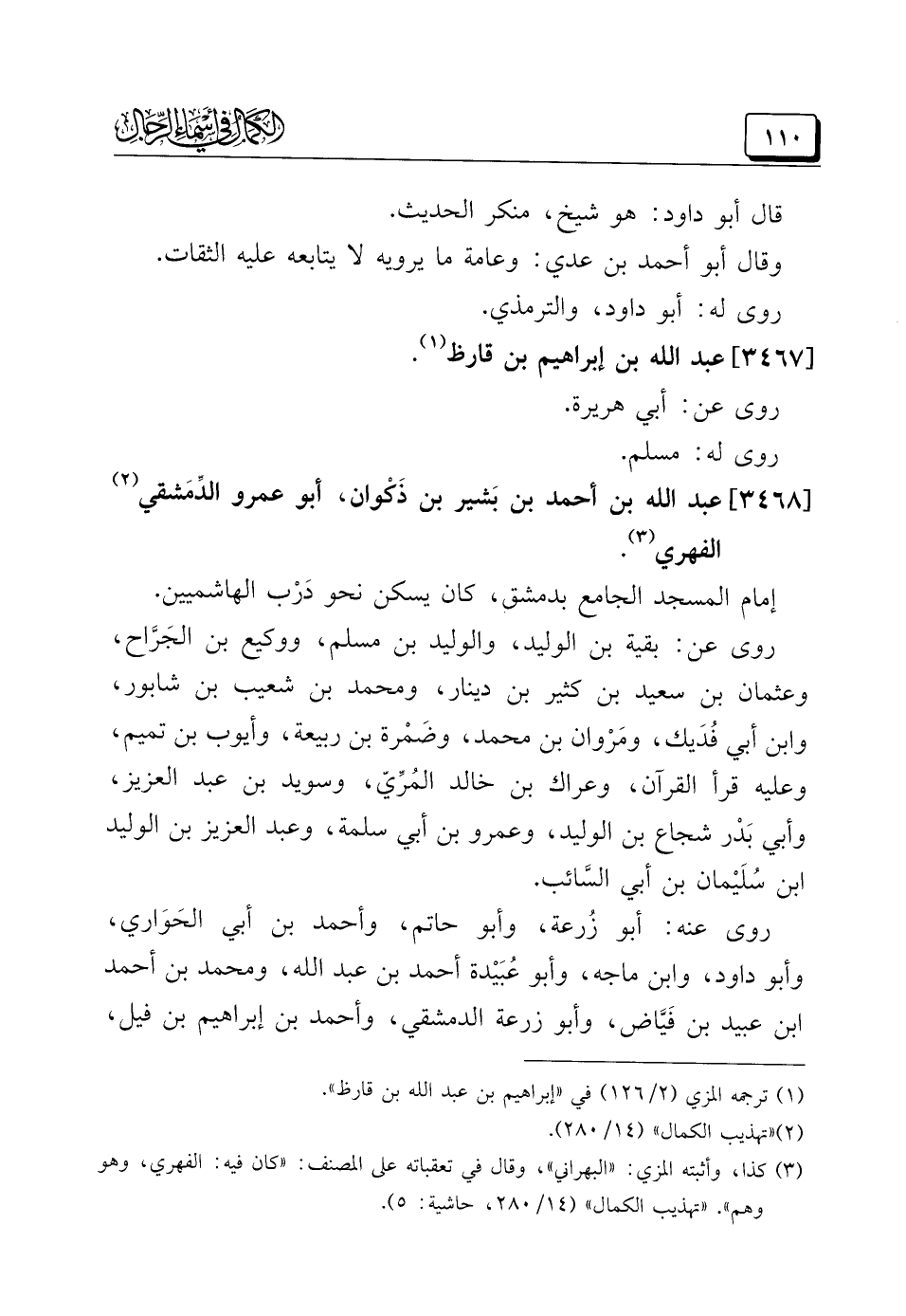 (¬٣) كذا، وأثبته المزي: "البهراني"، وقال في تعقباته على المصنف: "كان فيه: الفهري، وهو وهم". "تهذيب الكمال" (١٤/ ٢٨٠، حاشية: ٥).