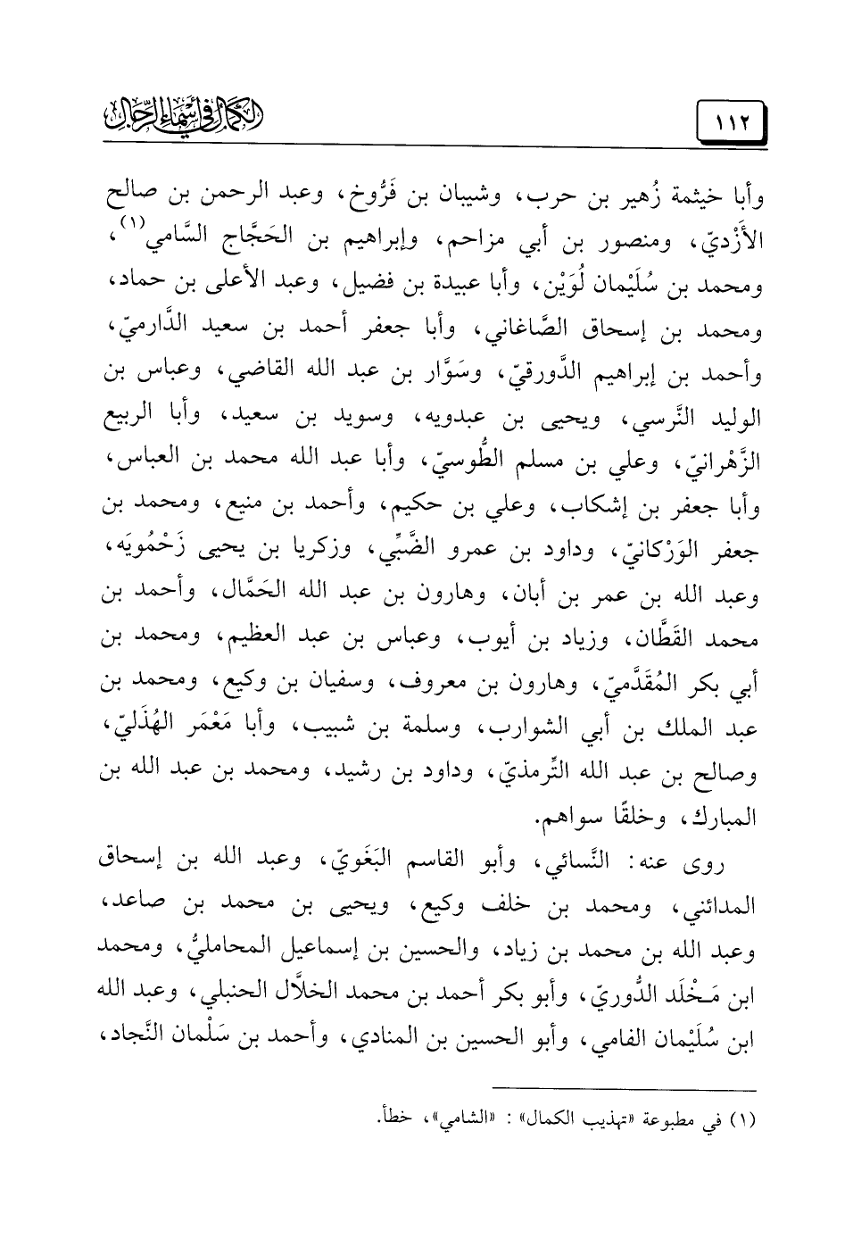 (¬١) في مطبوعة "تهذيب الكمال": "الشامي"، خطأ.
