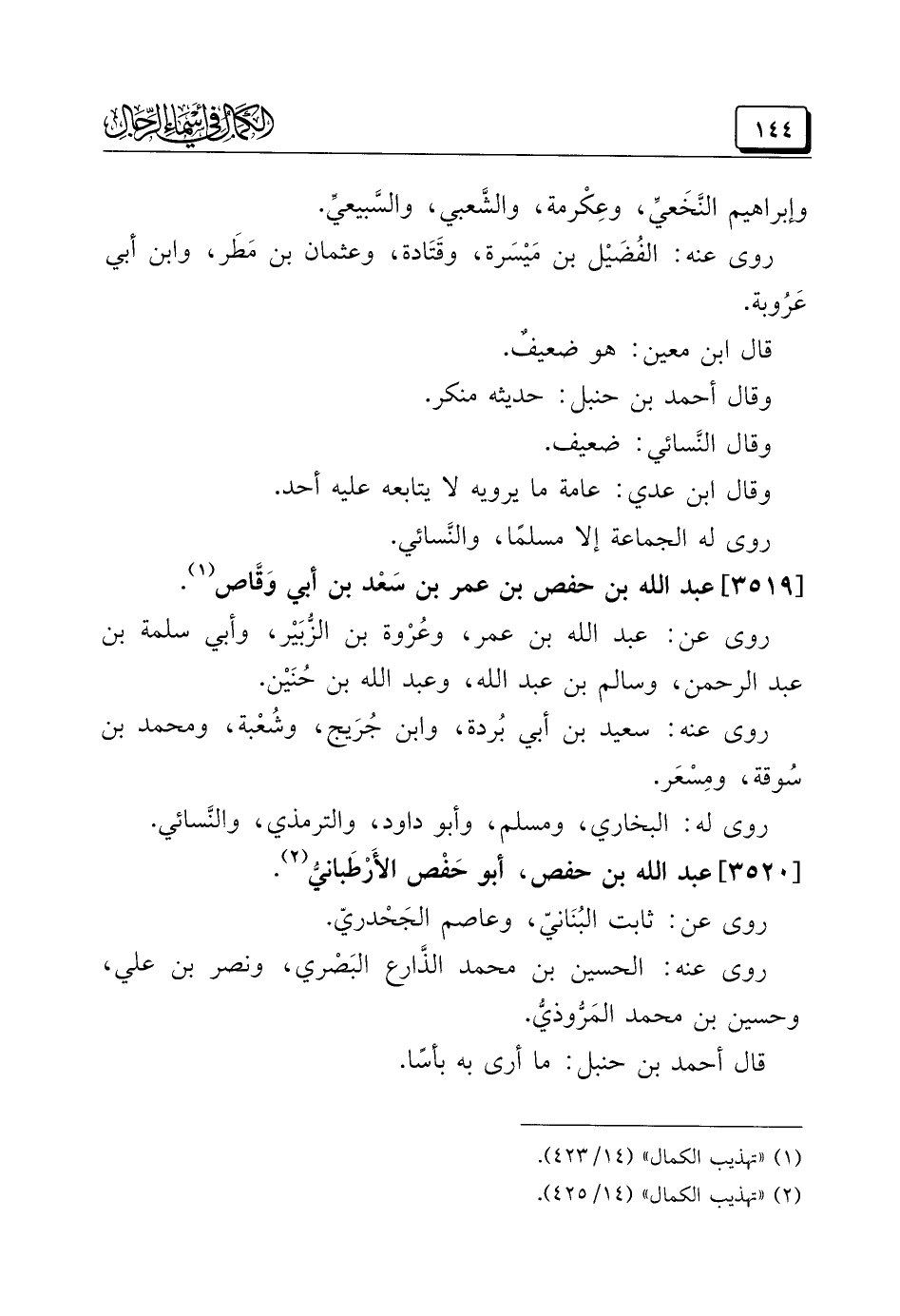 (¬١) "تهذيب الكمال" (١٤/ ٤٢٣).