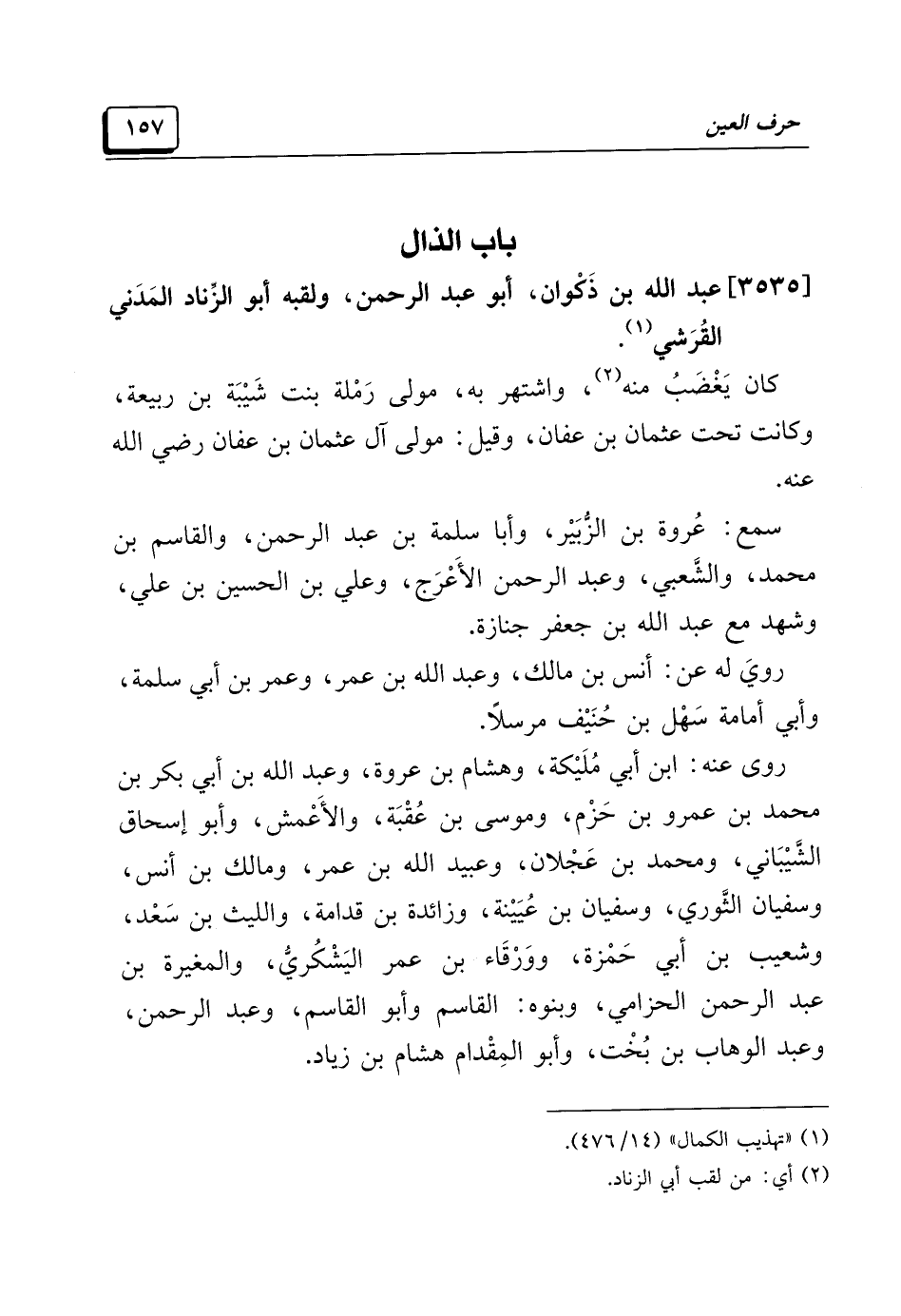 [٣٥٣٥] عبد الله بن ذَكْوان، أبو عبد الرحمن، ولقبه أبو الزِّناد المَدَني القُرَشي (¬١).