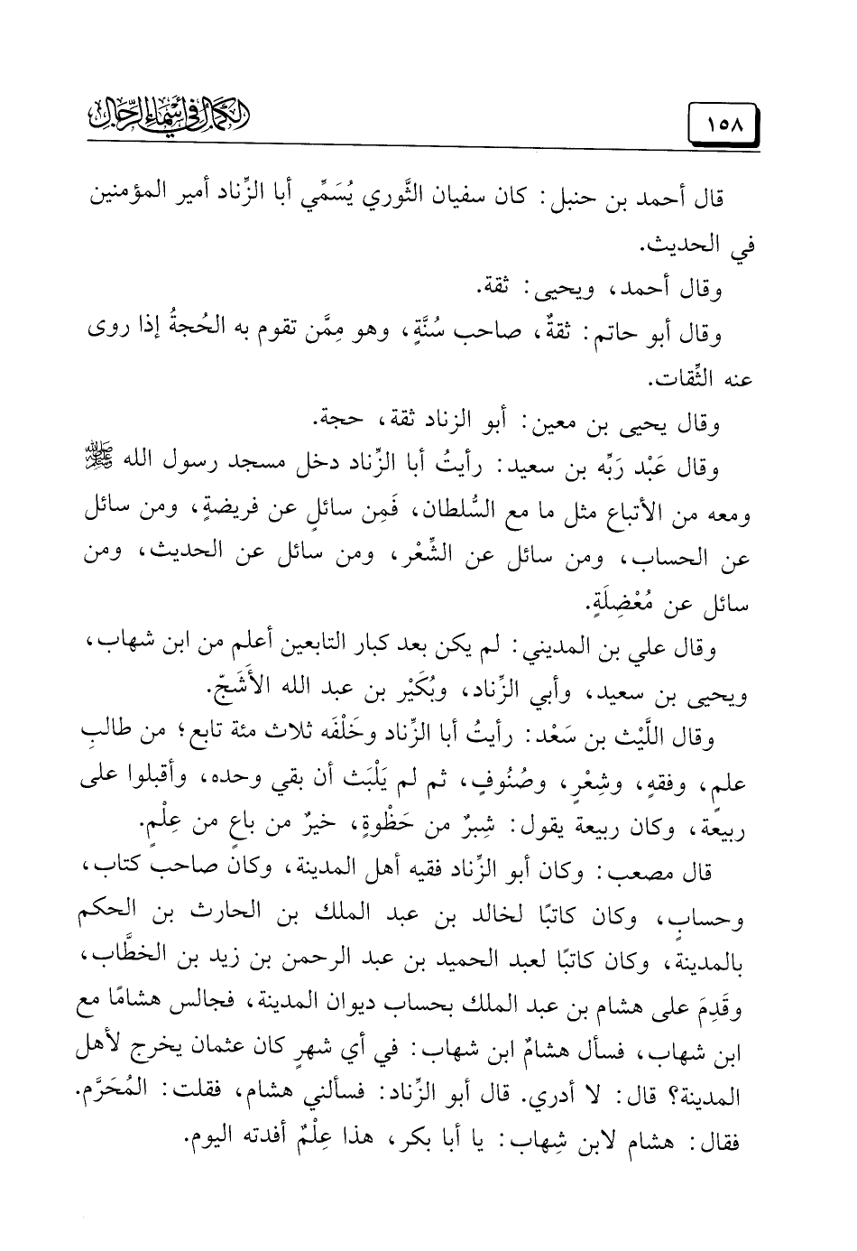 قال أحمد بن حنبل: كان سفيان الثَّوري يُسَمِّي أبا الزِّناد أمير المؤمنين في الحديث.