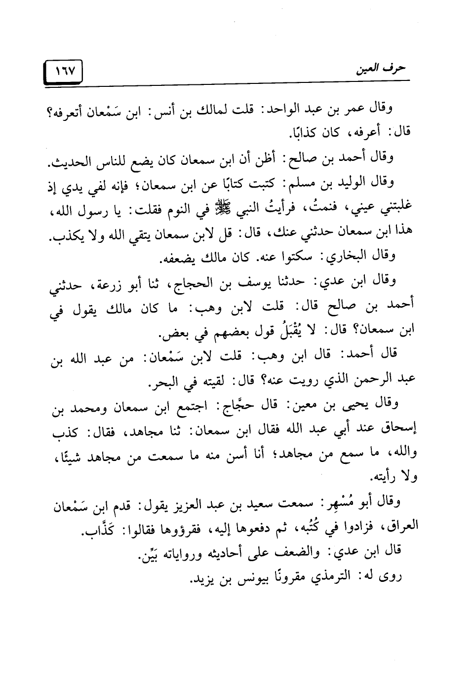وقال أبو مُسْهِر: سمعت سعيد بن عبد العزيز يقول: قدم ابن سَمْعان العراق، فزادوا في كُتُبه، ثم دفعوها إليه، فقرؤوها فقالوا: كَذَّاب.