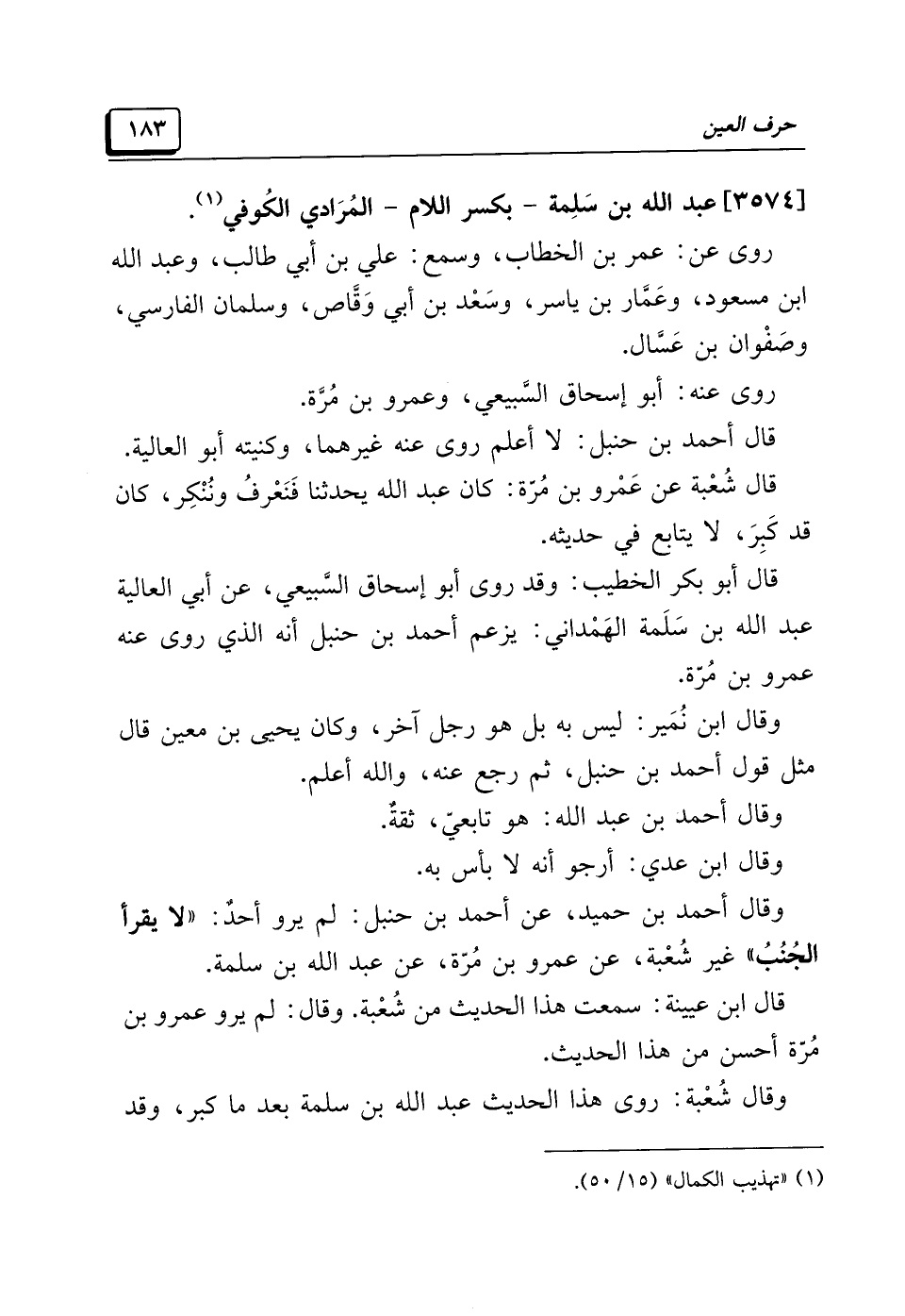 [٣٥٧٤] عبد الله بن سَلِمة -بكسر اللام- المُرَادي الكُوفي (¬١).