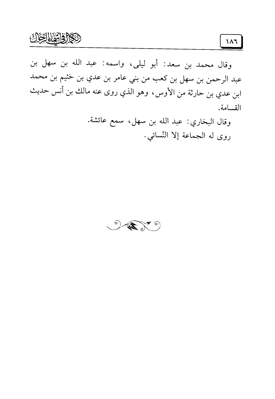 وقال محمد بن سعد: أبو ليلى، واسمه: عبد الله بن سهل بن عبد الرحمن بن سهل بن كعب من بني عامر بن عدي بن خثيم بن محمد ابن عدي بن حارثة من الأوس، وهو الذي روى عنه مالك بن أنس حديث القسامة.