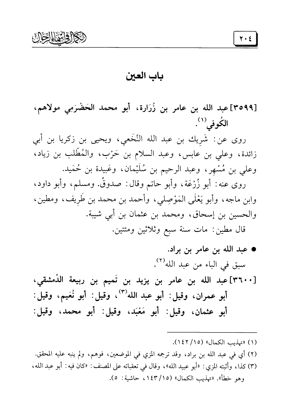 (¬٣) كذا، وأثبته المزي: "أبو عبيد الله"، وقال في تعقباته على المصنف: "كان فيه: أبو عبد الله، وهو خطأ". "تهذيب الكمال" (١٥/ ١٤٣، حاشية: ٥).
