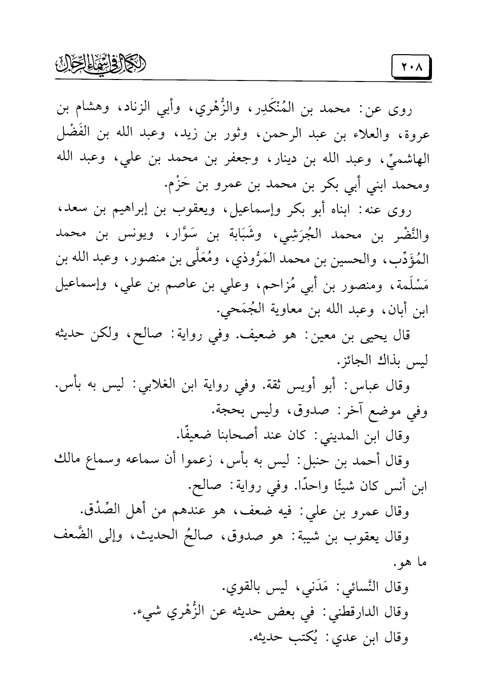 قال يحيى بن معين: هو ضعيف. وفي رواية: صالح، ولكن حديثه ليس بذاك الجائز.