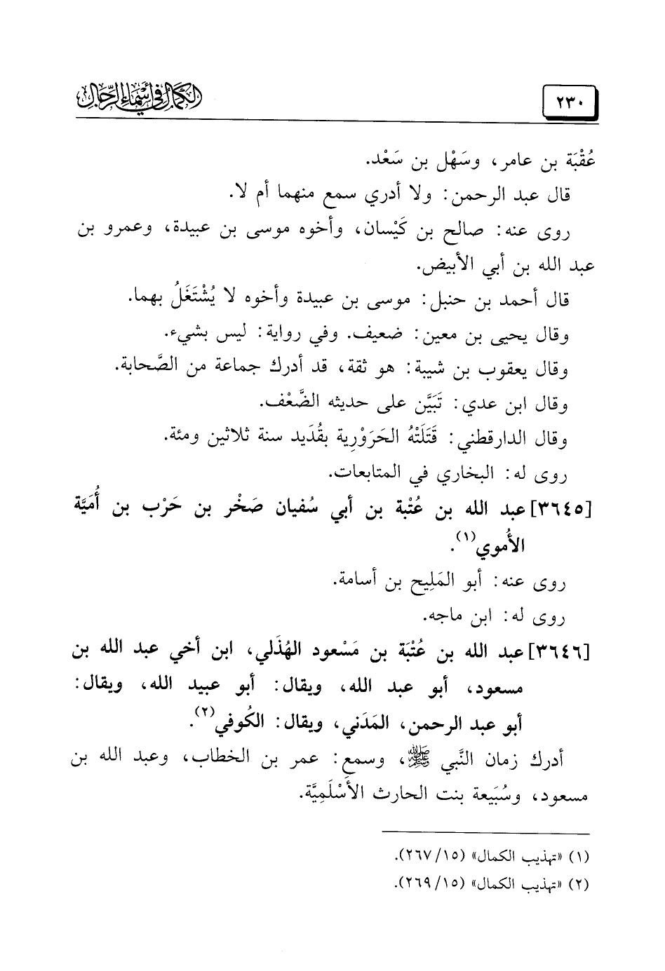 (¬١) "تهذيب الكمال" (١٥/ ٢٦٧).