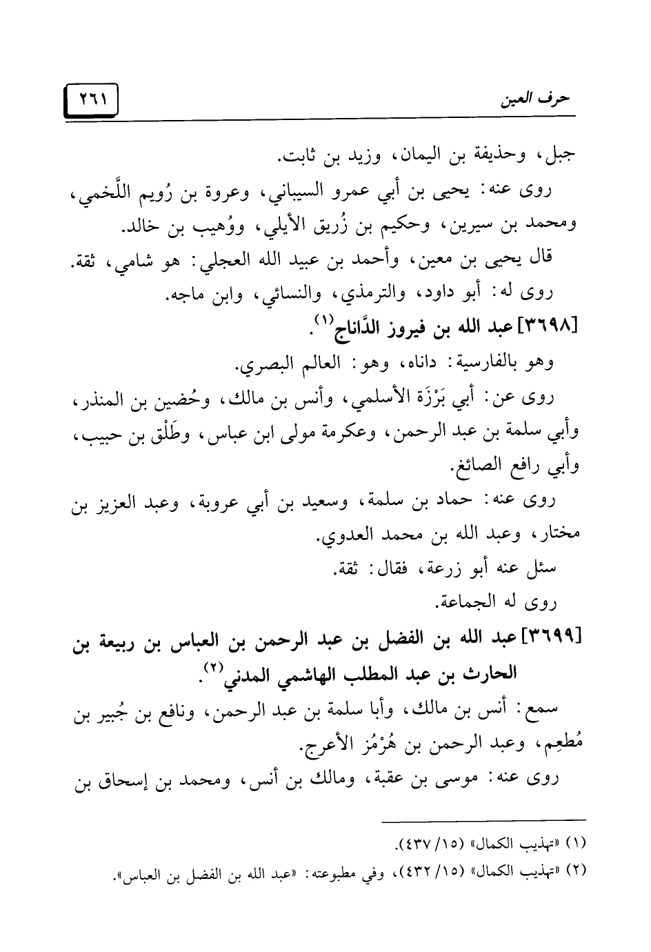 (¬٢) "تهذيب الكمال" (١٥/ ٤٣٢)، وفي مطبوعته: "عبد الله بن الفضل بن العباس".