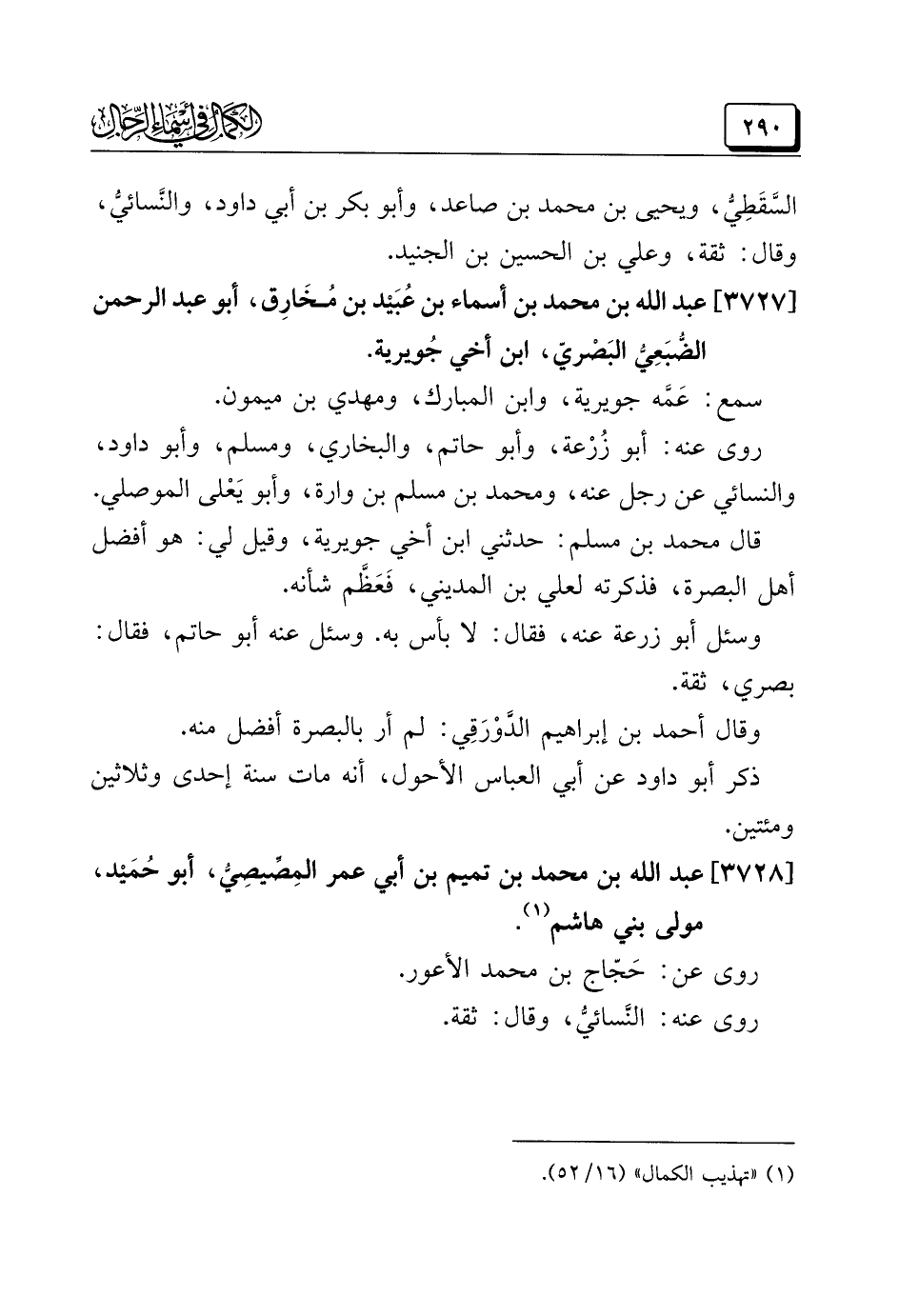 (¬١) "تهذيب الكمال" (١٦/ ٥٢).
