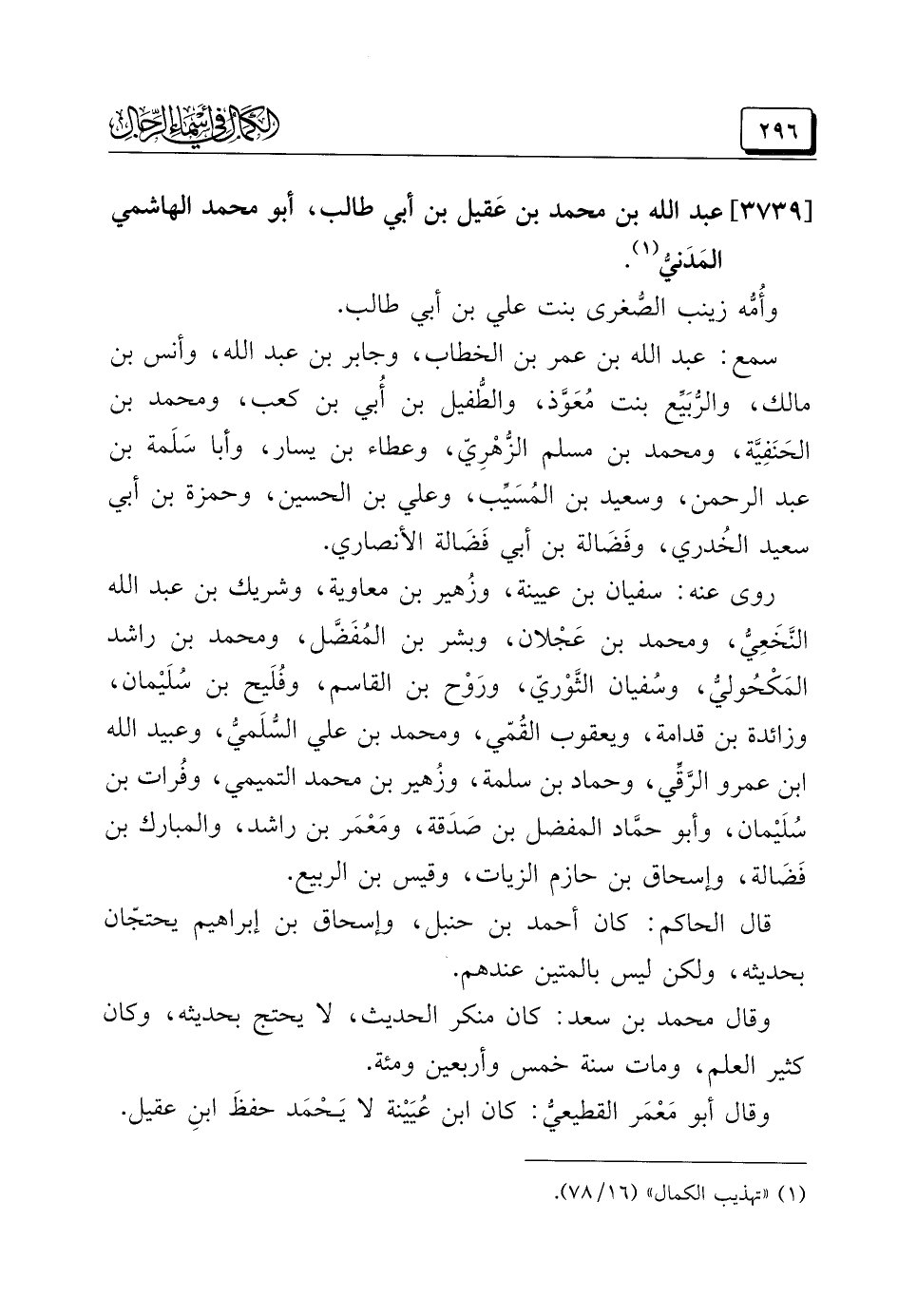 (¬١) "تهذيب الكمال" (١٦/ ٧٨).