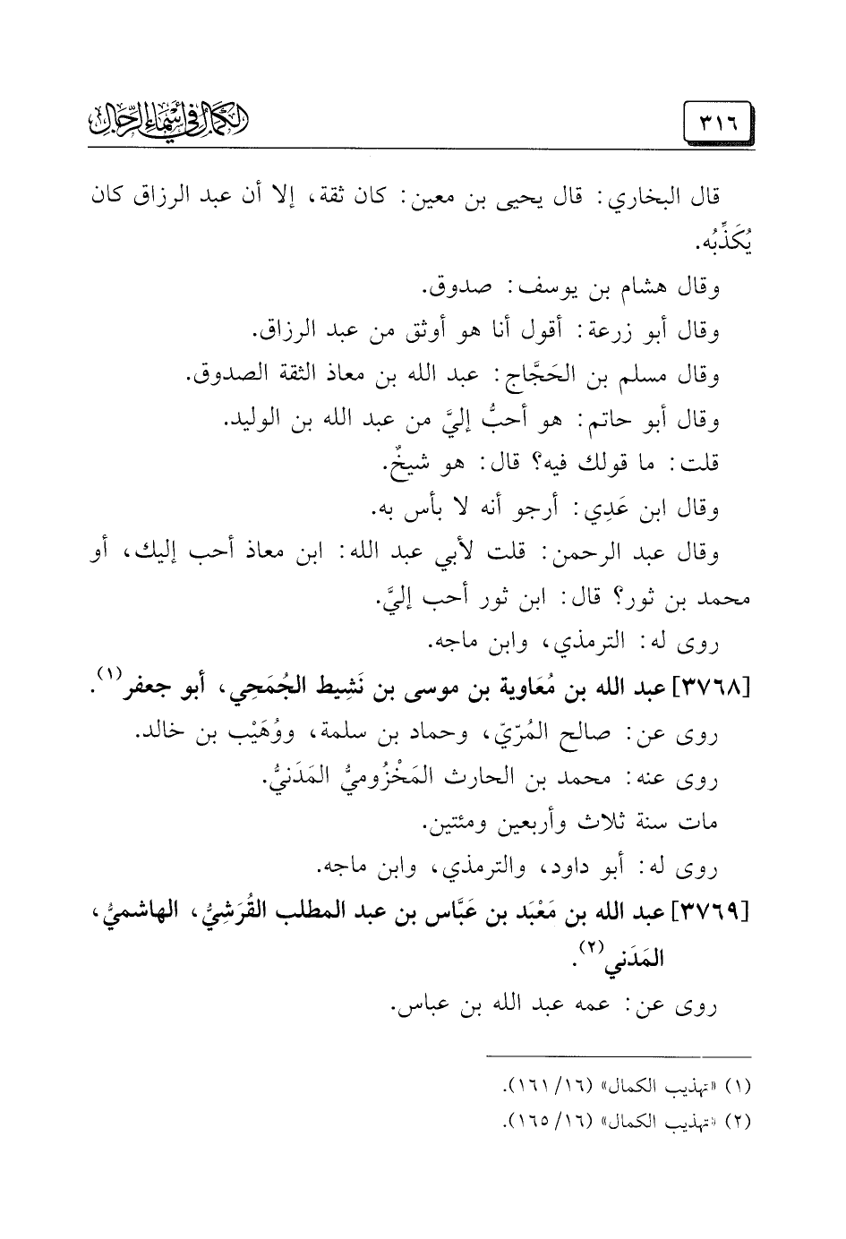 (¬١) "تهذيب الكمال" (١٦/ ١٦١).
