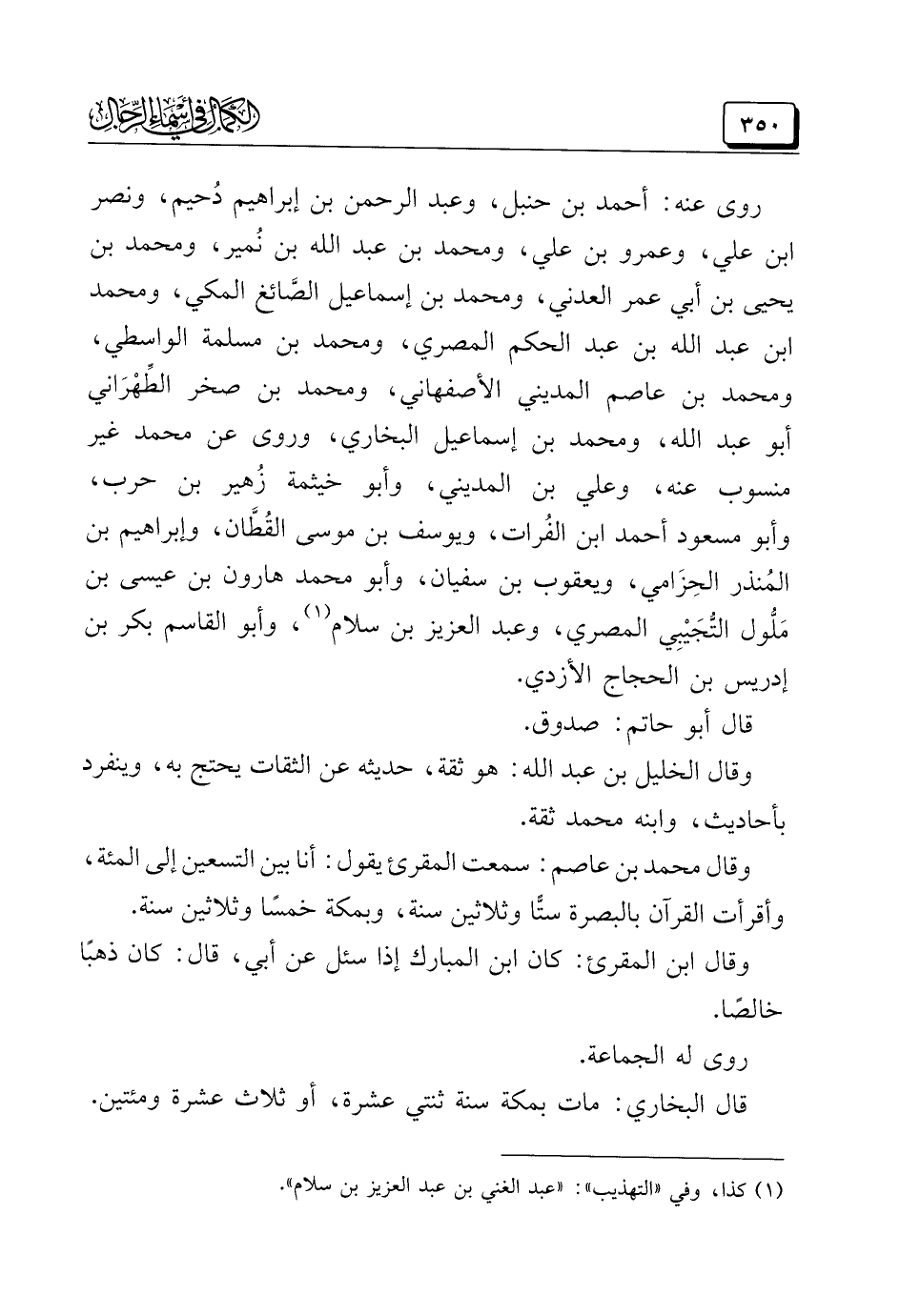 (¬١) كذا، وفي التهذيب: "عبد الغني بن عبد العزيز بن سلام".