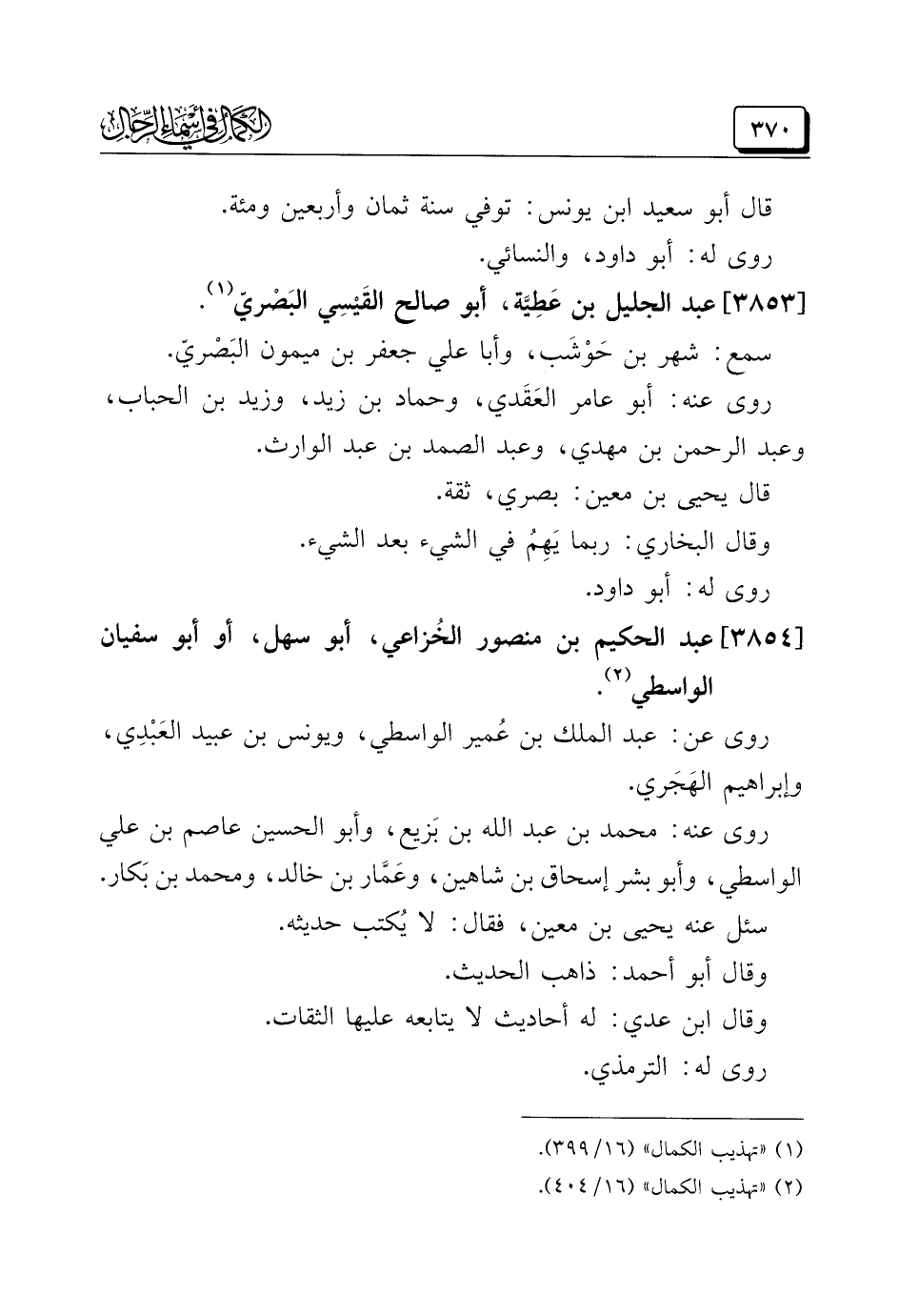 (¬١) "تهذيب الكمال" (١٦/ ٣٩٩).
