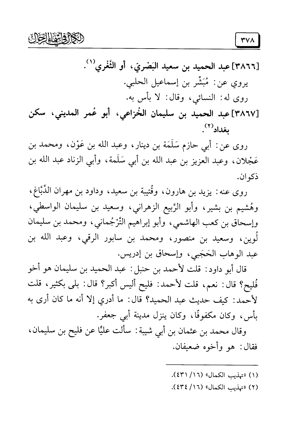 (¬١) "تهذيب الكمال" (١٦/ ٤٣١)