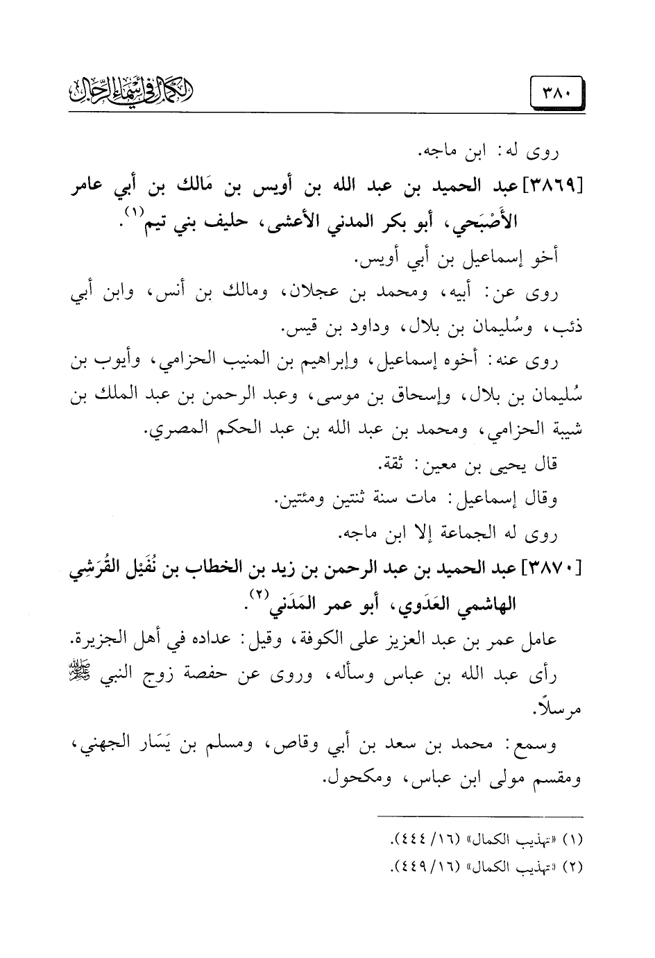 (¬٢) "تهذيب الكمال" (١٦/ ٤٤٩).