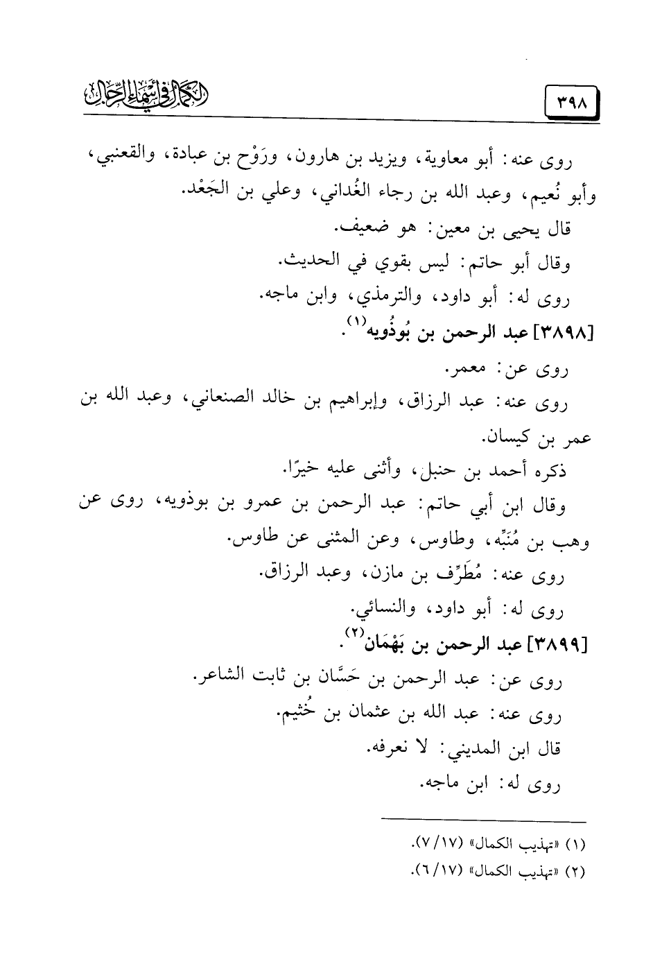 [٣٨٩٨] عبد الرحمن بن بُوذُويه (¬١).
