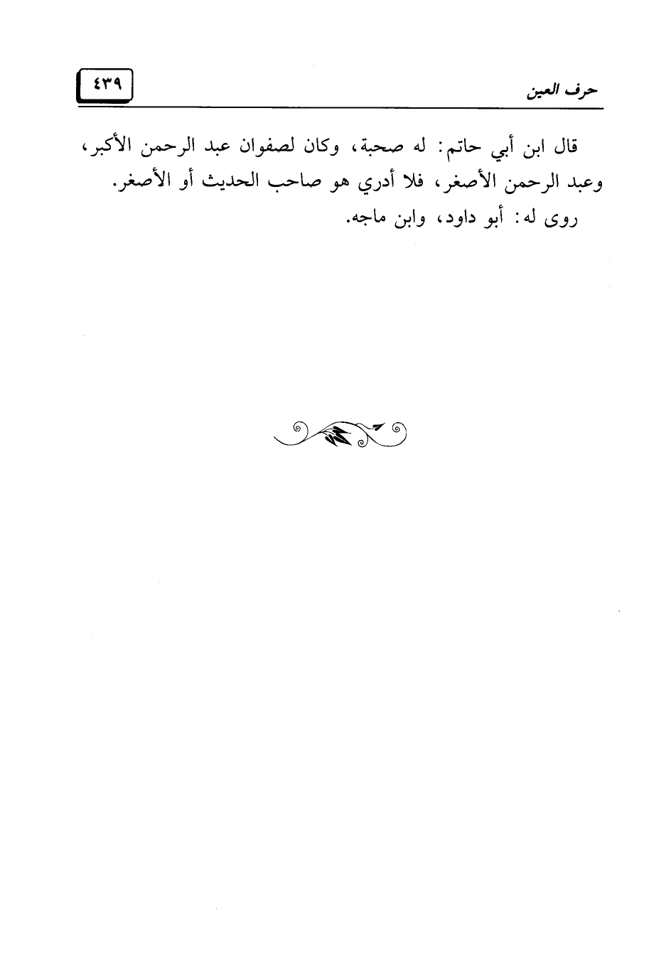 قال ابن أبي حاتم: له صحبة، وكان لصفوان عبد الرحمن الأكبر، وعبد الرحمن الأصغر، فلا أدري هو صاحب الحديث أو الأصغر.