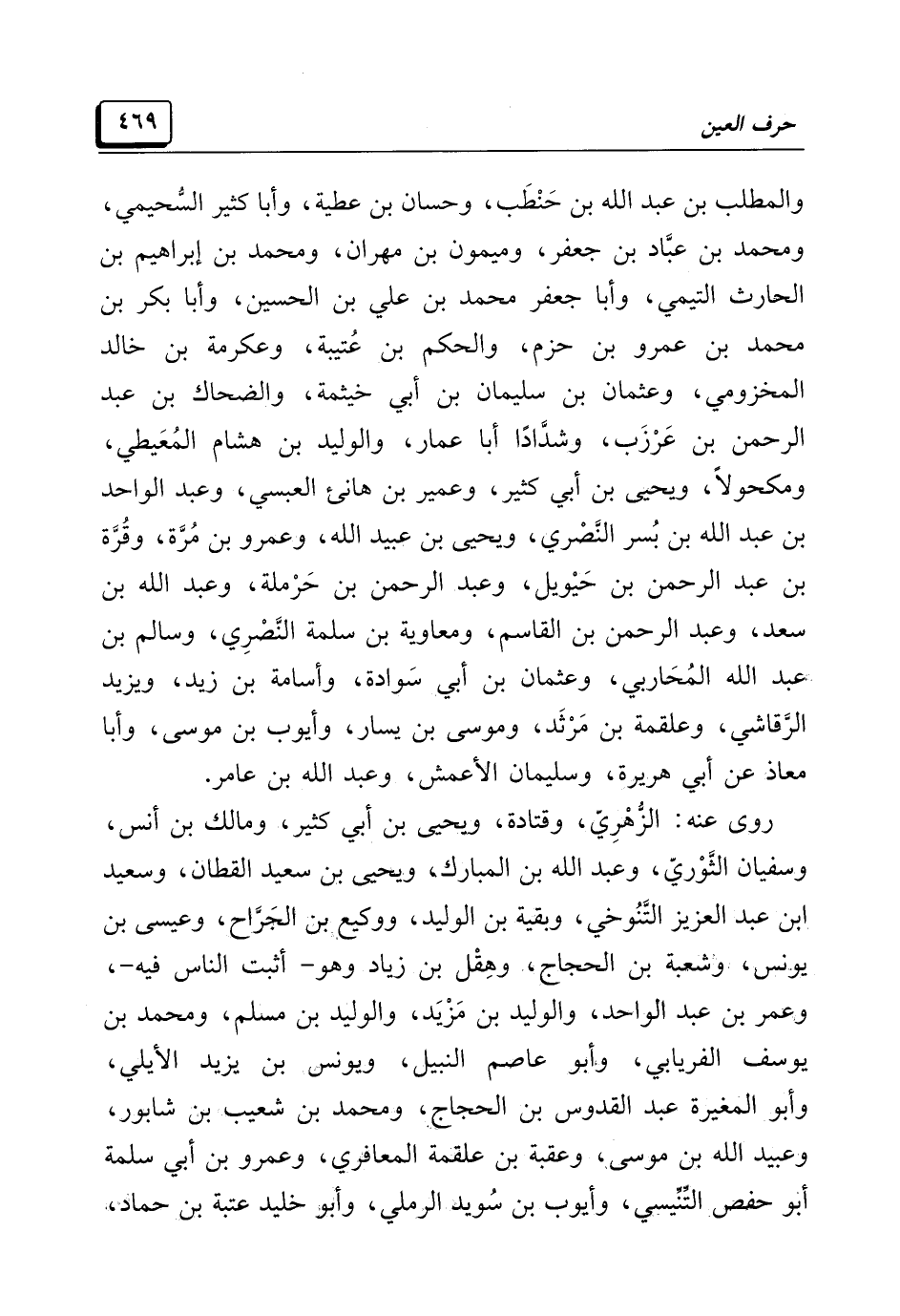 والمطلب بن عبد الله بن حَنْطَب، وحسان بن عطية، وأبا كثير السُّحيمي، ومحمد بن عبَّاد بن جعفر، وميمون بن مهران، ومحمد بن إبراهيم بن الحارث التيمي، وأبا جعفر محمد بن علي بن الحسين، وأبا بكر بن محمد بن عمرو بن حزم، والحكم بن عُتيبة، وعكرمة بن خالد المخزومي، وعثمان بن سليمان بن أبي خيثمة، والضحاك بن عبد الرحمن بن عَرْزَب، وشدَّادًا أبا عمار، والوليد بن هشام المُعَيطي، ومكحولًا، ويحيى بن أبي كثير، وعمير بن هانئ العبسي، وعبد الواحد بن عبد الله بن بُسر النَّصْري، ويحيى بن عبيد الله، وعمرو بن مُرَّة، وقُرَّة بن عبد الرحمن بن حَيْويل، وعبد الرحمن بن حَرْملة، وعبد الله بن سعد، وعبد الرحمن بن القاسم، ومعاوية بن سلمة النَّصْرِي، وسالم بن عبد الله المُحَاربي، وعثمان بن أبي سَوادة، وأسامة بن زيد، ويزيد الرَّقاشي، وعلقمة بن مَرْثَد، وموسي بن يسار، وأيوب بن موسى، وأبا معاذ عن أبي هريرة، وسليمان الأعمش، وعبد الله بن عامر.