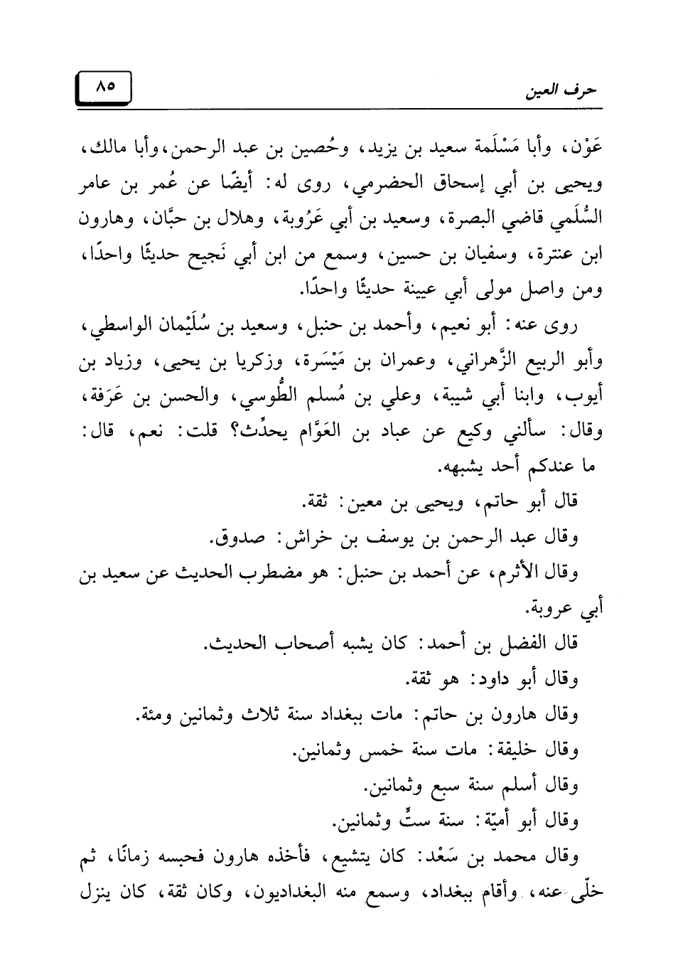 وقال الأثرم، عن أحمد بن حَنْبَل: هو مضطرب الحديث عن سَعِيد بن أبي عروبة.