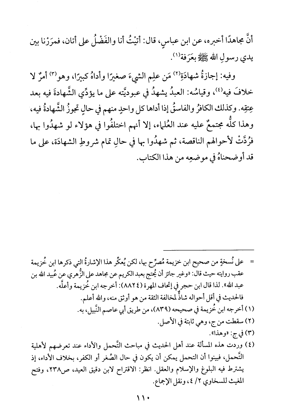 (¬٤) وردت هذه المسألة عند أهل الحديث في مباحث التَّحمل والأداء عند تعرضهم لأهلية التَّحمل، فبينوا أن التحمل يمكن أن يكون في حال الصِّغر أو الكفر، بخلاف الأداء، إذ يشترط فيه البلوغ والإسلام والعقل. انظر: الاقتراح لابن دقيق العيد، ص ٢٣٨، وفتح المغيث للسخاوي ٢/ ٤، ونقل الإجماع.
