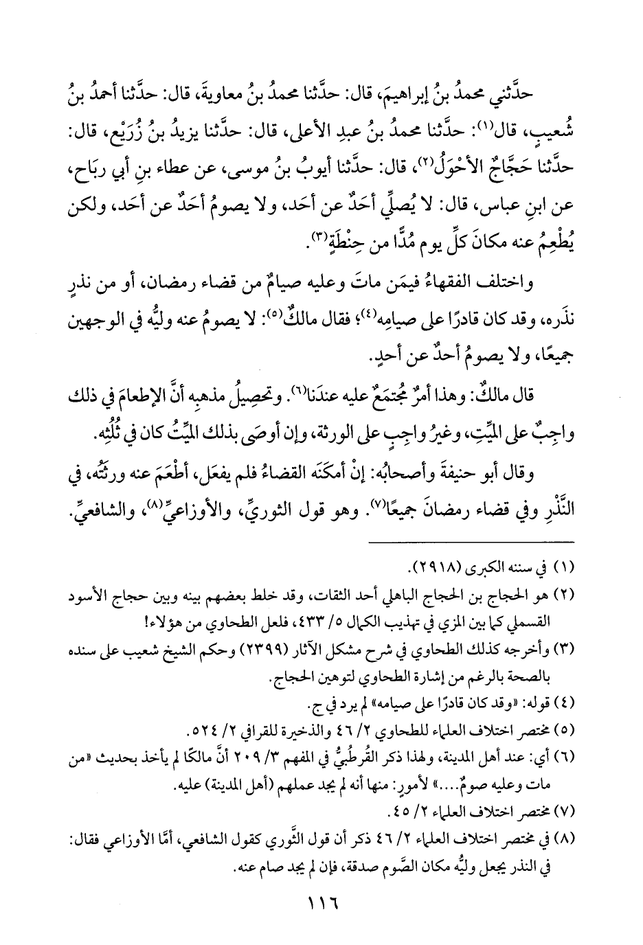 (¬٢) هو الحجاج بن الحجاج الباهلي أحد الثقات، وقد خلط بعضهم بينه وبين حجاج الأسود القسملي كما بين المزي في تهذيب الكمال ٥/ ٤٣٣، فلعل الطحاوي من هؤلاء!