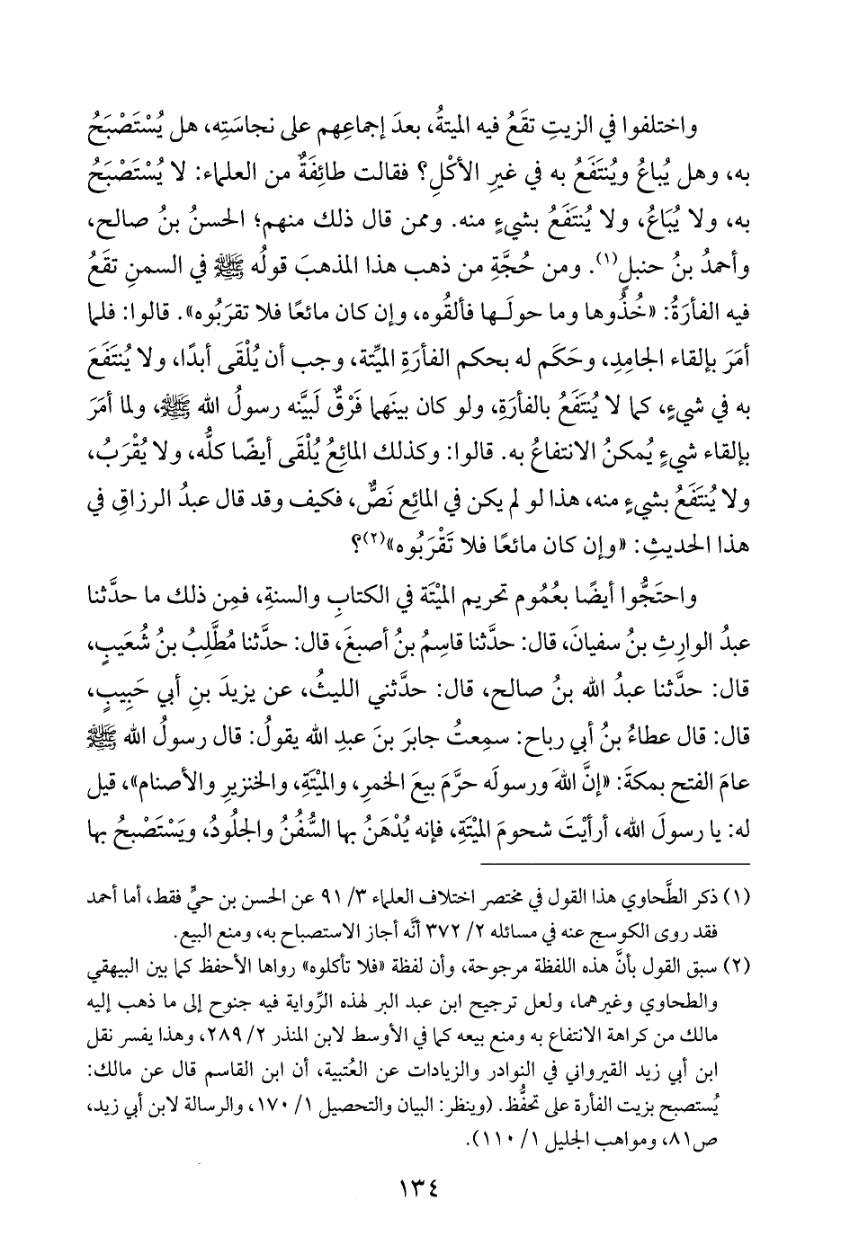 (¬١) ذكر الطَّحاوي هذا القول في مختصر اختلاف العلماء ٣/ ٩١ عن الحسن بن حيٍّ فقط، أما أحمد فقد روى الكوسج عنه في مسائله ٢/ ٣٧٢ أنَّه أجاز الاستصباح به، ومنع البيع.
