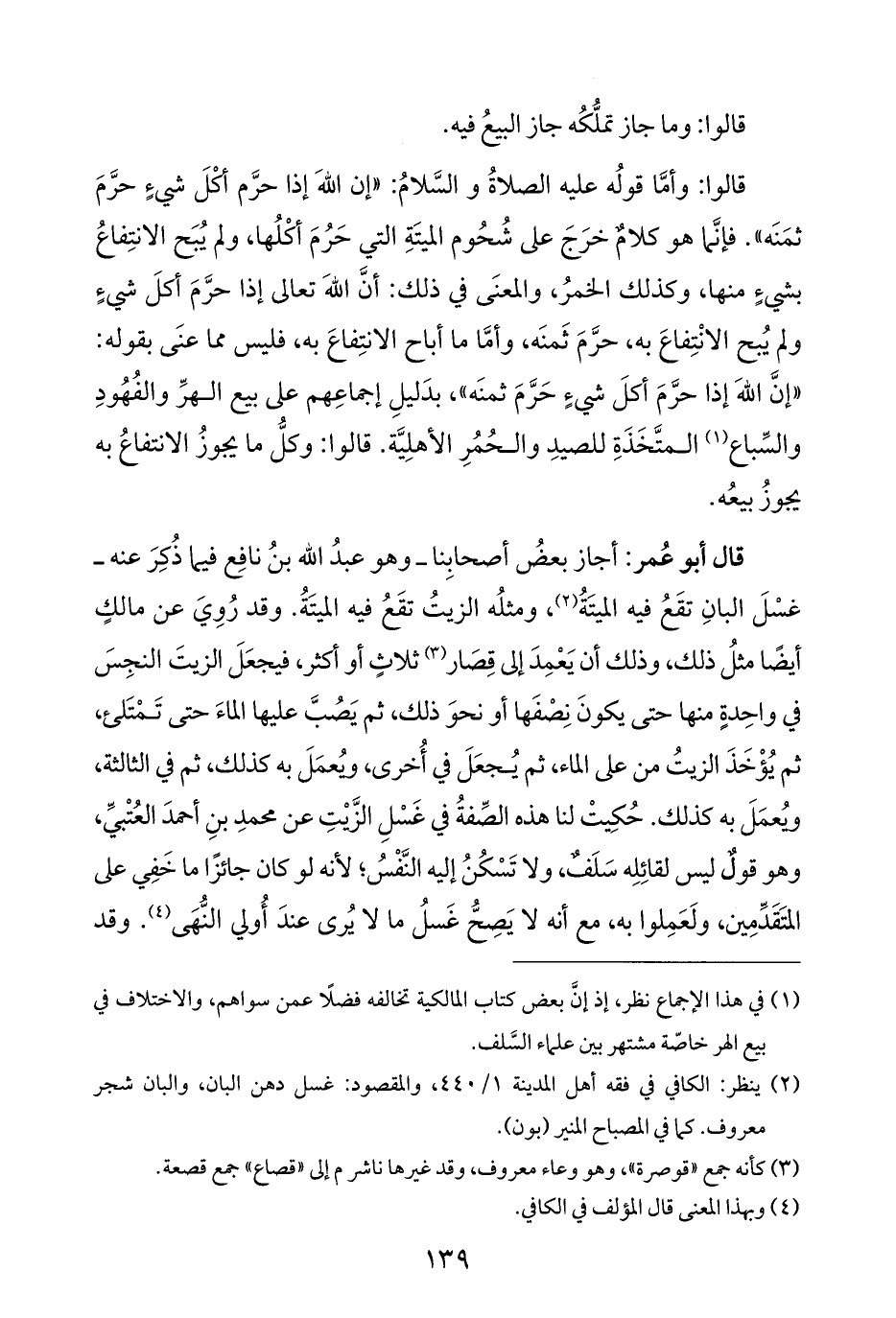 (¬٢) ينظر: الكافي في فقه أهل المدينة ١/ ٤٤٠، والمقصود: غسل دهن البان، والبان شجر معروف. كما في المصباح المنير (بون).