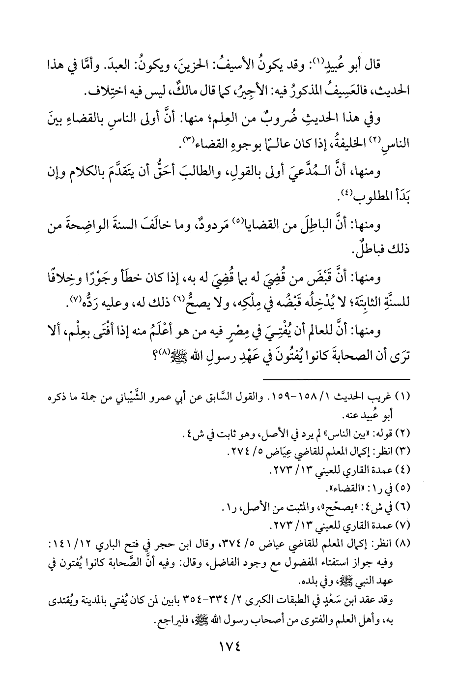 (¬٨) انظر: إكمال المعلم للقاضي عياض ٥/ ٣٧٤، وقال ابن حجر في فتح الباري ١٢/ ١٤١: وفيه جواز استفتاء المفضول مع وجود الفاضل، وقال: وفيه أنَّ الصَّحابة كانوا يُفتون في عهد النبي - صلى الله عليه وسلم -، وفي بلده.