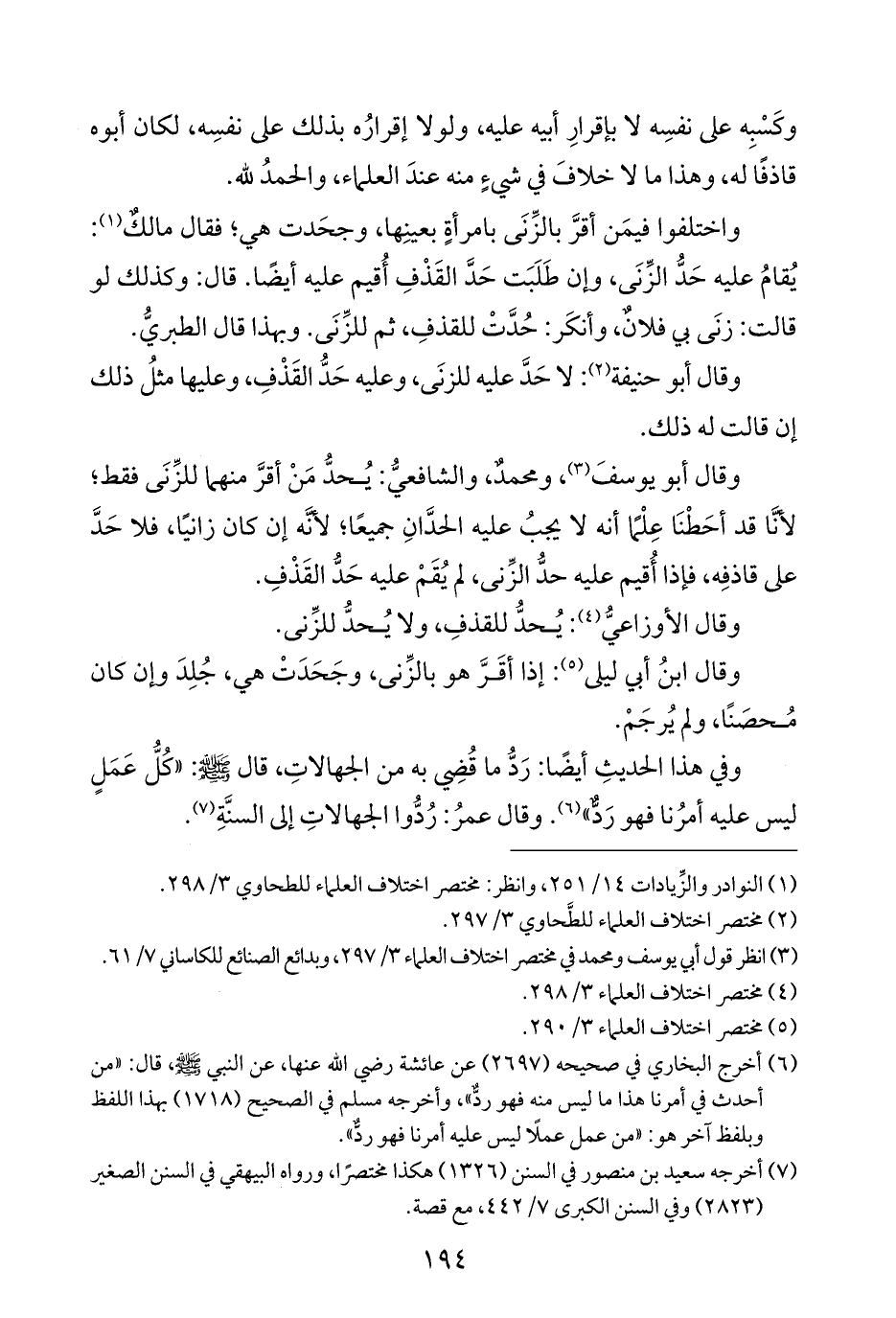 (¬١) النوادر والزّيادات ١٤/ ٢٥١، وانظر: مختصر اختلاف العلماء للطحاوي ٣/ ٢٩٨.