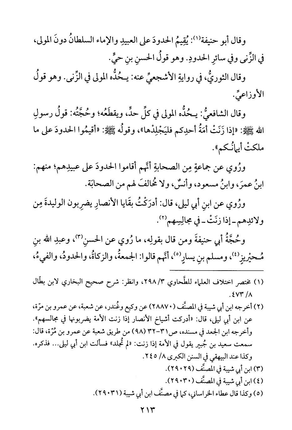 ورُوي عن جماعةٍ مِن الصحابةِ أنَّهم أقاموا الحدودَ على عبيدِهم؛ منهم: ابنُ عمرَ، وابنُ مسعود، وأنسٌ، ولا مُخالفَ لهم من الصحابَة.