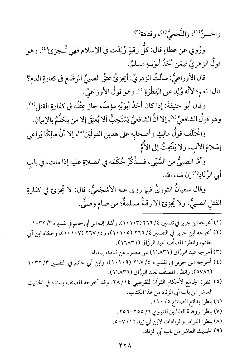 قال الأوزاعيُّ: سألتُ الزهريَّ: أيجزئُ عتقُ الصَّبيِّ المرضَع في كفارةِ الدم؟