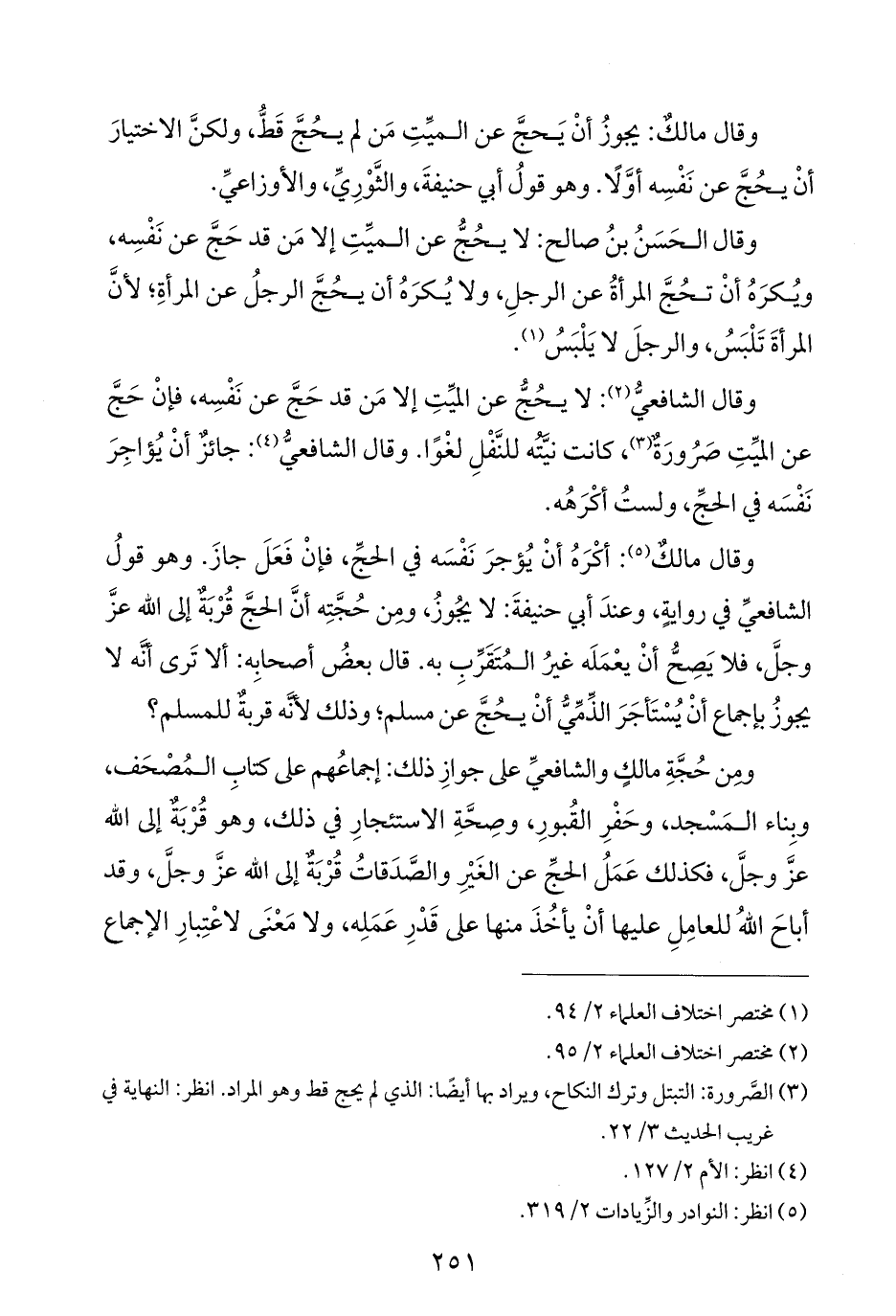 ومن حُجَّةِ مالكٍ والشافعيِّ على جوازِ ذلك: إجماعُهم على كتابِ المُصحَف، وبِناء المَسْجد، وحَفْرِ القُبورِ، وصِحَّةِ الاستئجارِ في ذلك، وهو قُرْبَةٌ إلى الله عزَّ وجلَّ، فكذلك عَمَلُ الحجِّ عن الغَيْرِ والصَّدَقاتُ قُرْبَةٌ إلى الله عزَّ وجلَّ، وقد أباحَ اللهُ للعامِلِ عليها أنْ يأخُذَ منها على قَدْرِ عَمَلِه، ولا مَعْنَى لاعْتِبارِ الإجماع