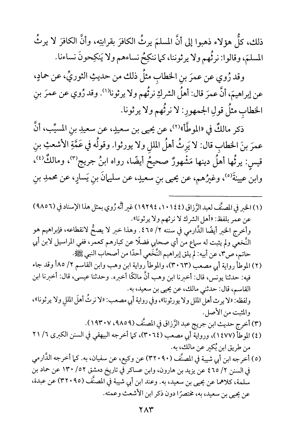 (¬١) الخبر في المصنَّف لعبد الرَّزاق (١٠١٤٤، ١٩٢٩٤) غير أنَّه رُوي بمثل هذا الإسناد في (٩٨٥٦) عن عمر بلفظ: "أهل الشرك لا نرثهم ولا يرثونا".