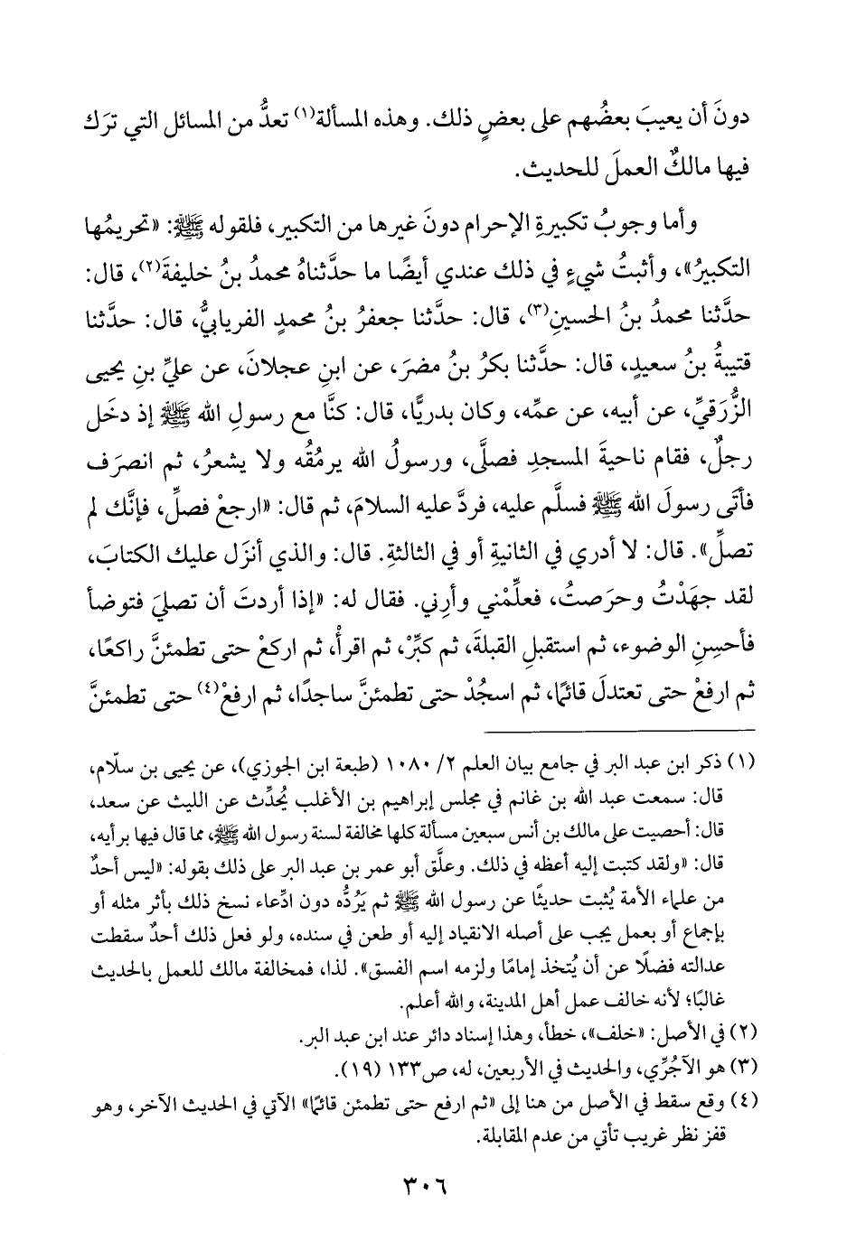(¬٤) وقع سقط في الأصل من هنا إلى "ثم ارفع حتى تطمئن قائمًا" الآتي في الحديث الآخر، وهو قفز نظر غريب تأتي من عدم المقابلة.