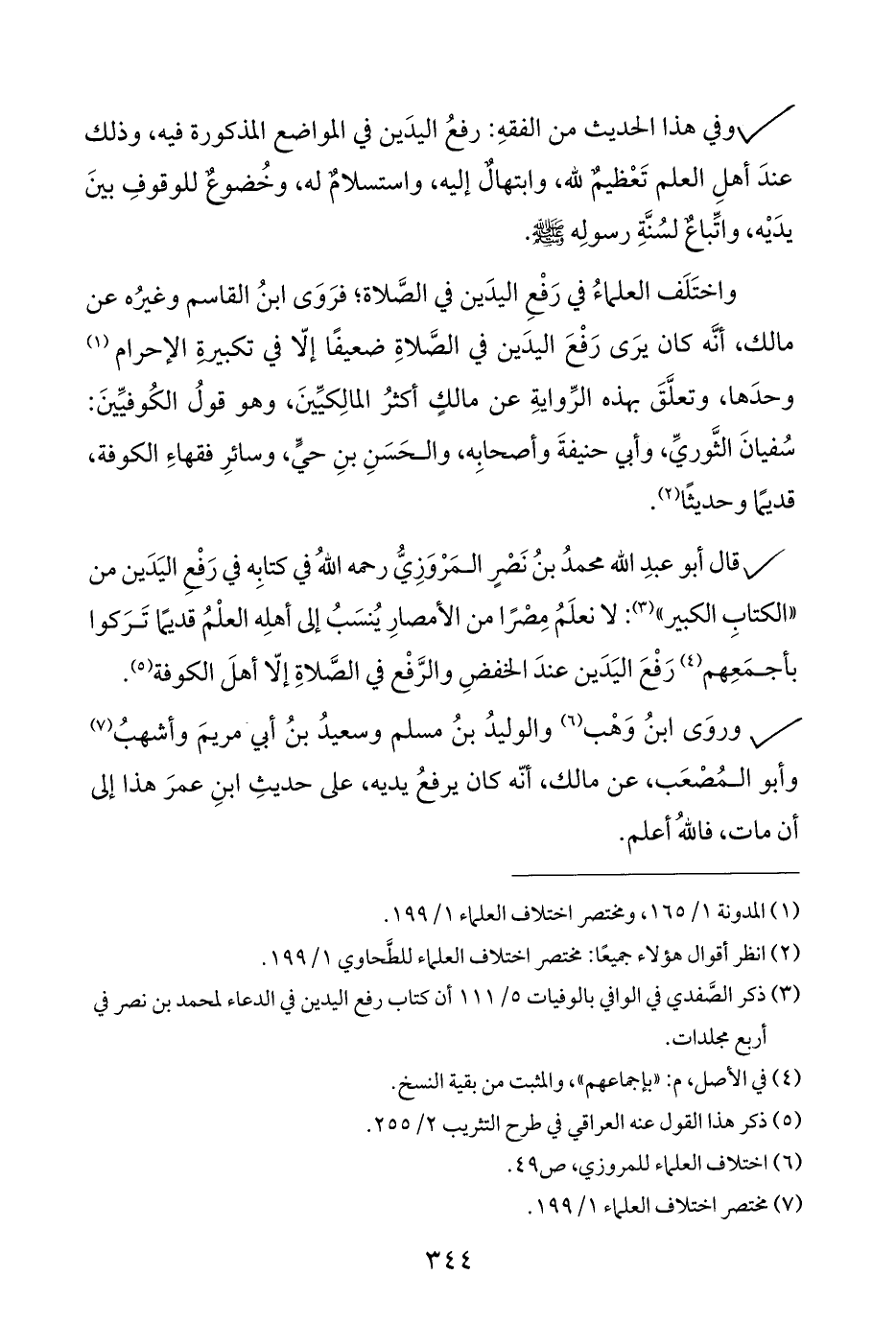(¬٣) ذكر الصَّفدي في الوافي بالوفيات ٥/ ١١١ أن كتاب رفع اليدين في الدعاء لمحمد بن نصر في أربع مجلدات.
