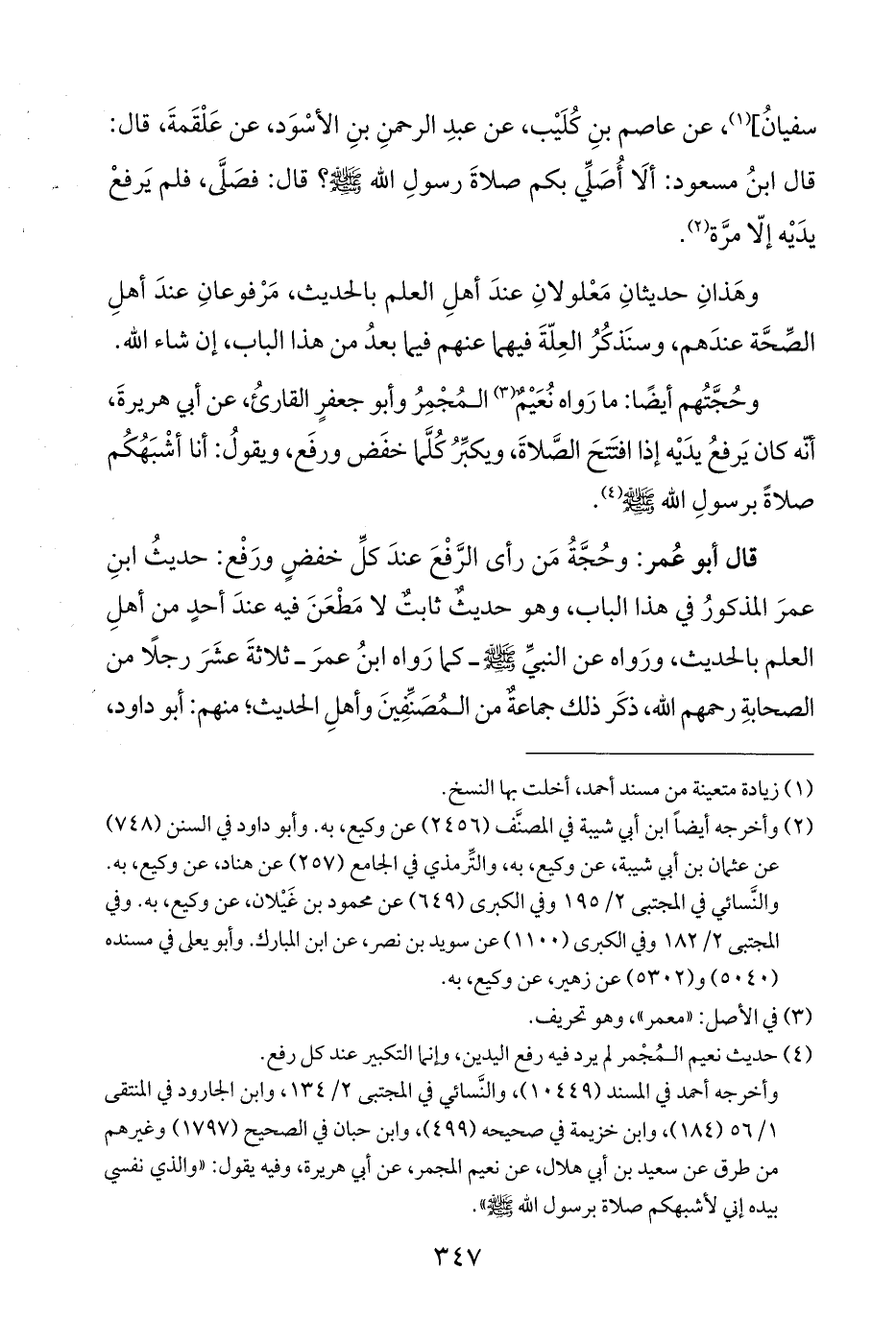 (¬٤) حديث نعيم المُجْمر لم يرد فيه رفع اليدين، وإنما التكبير عند كل رفع.