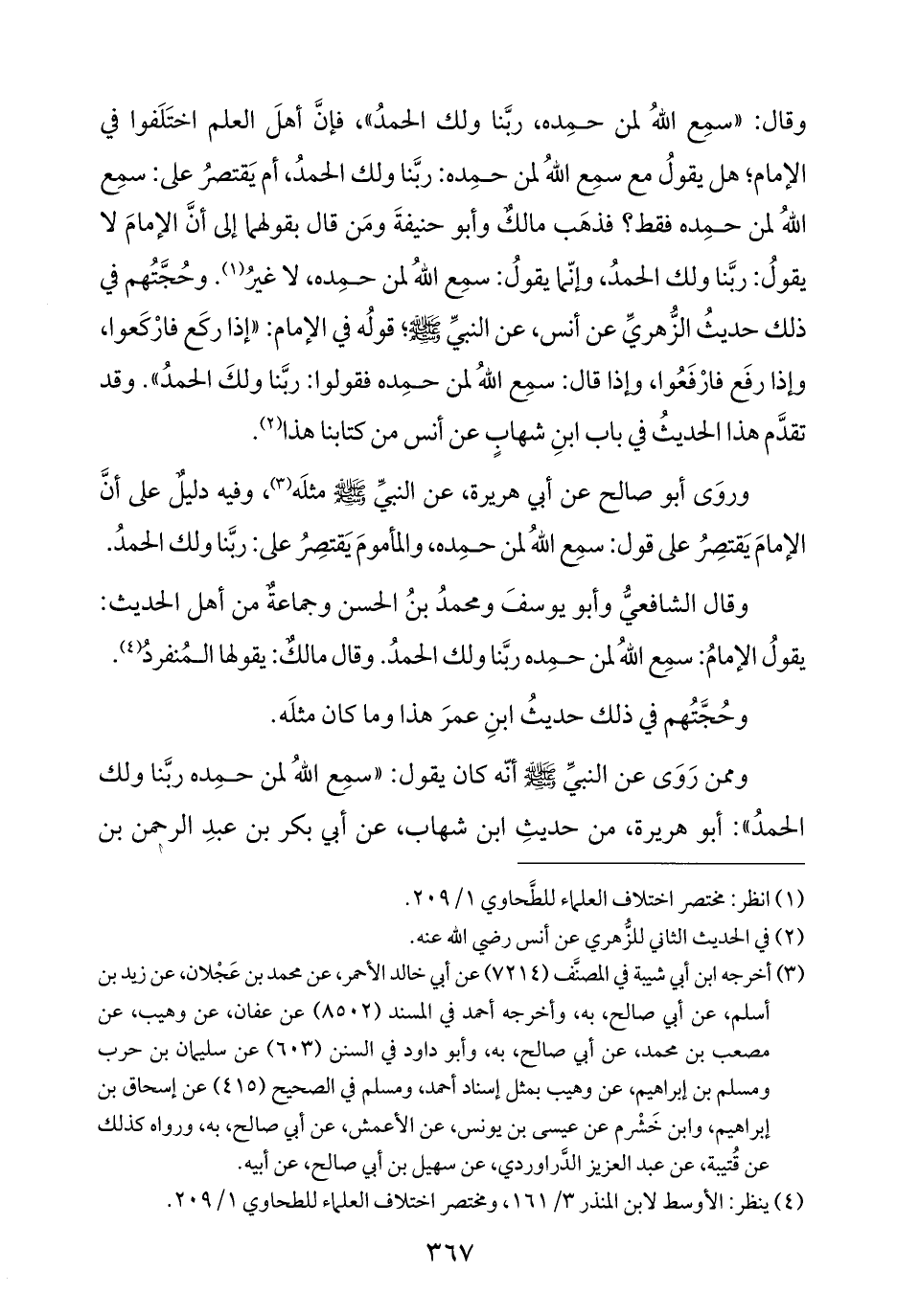 وقال الشافعيُّ وأبو يوسفَ ومحمدُ بنُ الحسن وجماعةٌ من أهل الحديث: يقولُ الإمامُ: سمِع اللهُ لمن حمِده ربَّنا ولك الحمدُ. وقال مالكٌ: يقولها المُنفردُ (¬٤).