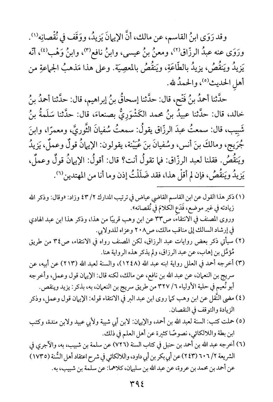 (¬٥) حملت كتب: السنة لعبد الله بن أحمد، والإيمان: لابن أبي شيبة ولأبي عبيد ولابن مندة، وكتب ابن بطة واللالكائي، نصوصًا كثيرة عن أهل العلم في ذلك.