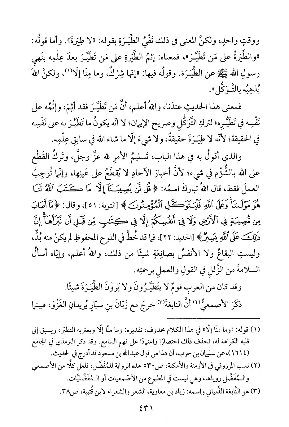 وقد كان من العربِ قومٌ لا يتَطيَّرُونَ ولا يَروْنَ الطِّيَرَةَ شيئًا.