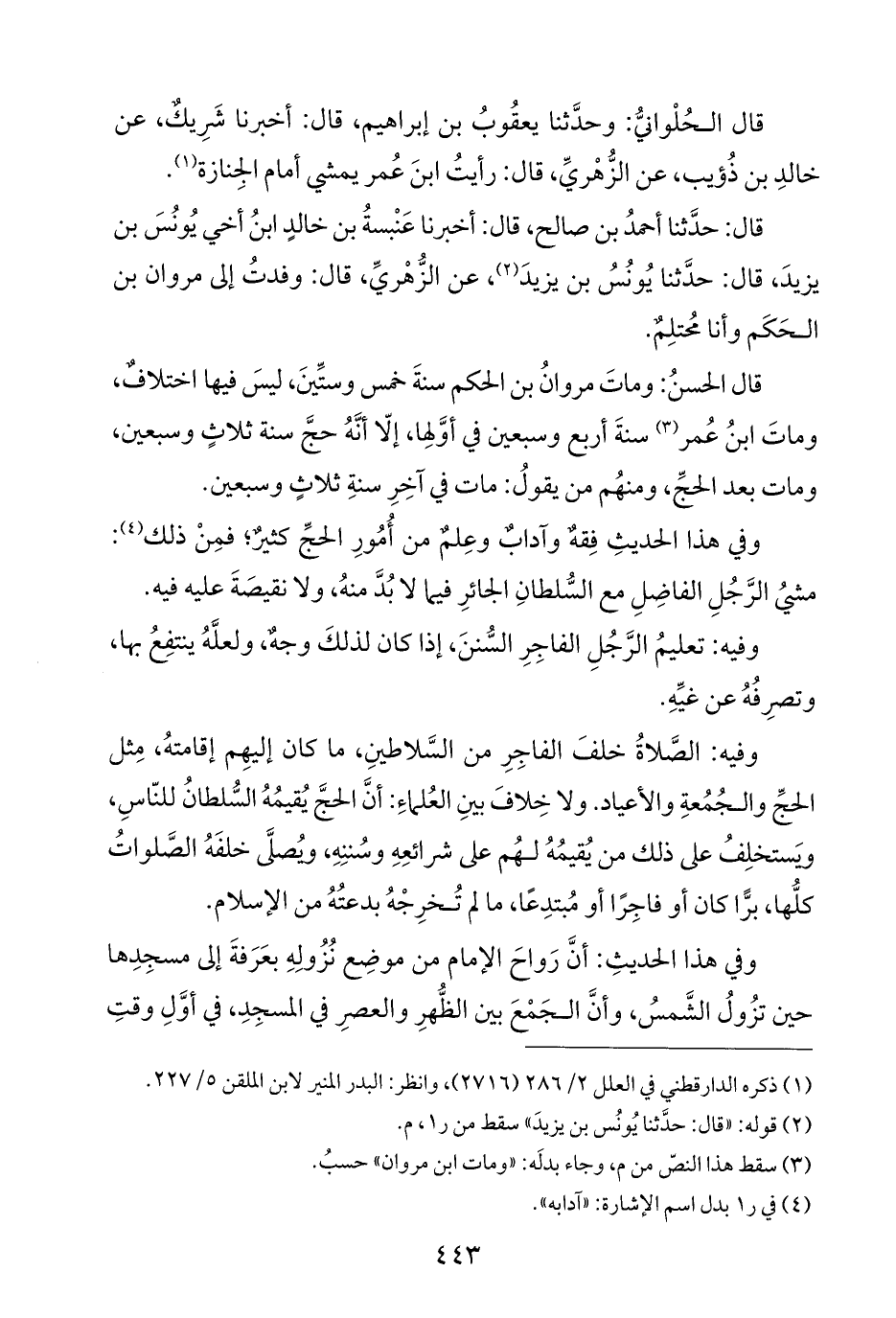 قال: حدَّثنا أحمدُ بن صالح، قال: أخبرنا عَنْبسةُ بن خالدٍ ابنُ أخي يُونُسَ بن يزيدَ، قال: حدَّثنا يُونُسُ بن يزيدَ (¬٢)، عن الزُّهْريِّ، قال: وفدتُ إلى مروان بن الحَكَم وأنا مُحتلِمٌ.