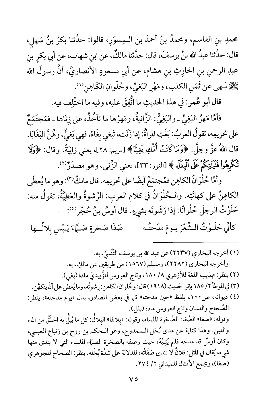 وأمَّا حُلْوَانُ الكاهِن فمُجتمَعٌ أيضًا على تحريمِه. قال مالكٌ (¬٣): وهو ما يُعطَى الكاهِنُ على كهانَتِه. والحُلْوَانُ في كلام العربِ: الرِّشوةُ والعَطِيَّةُ، تقولُ منه: حَلَوْتُ الرجلَ حُلْوانًا: إذا رَشَوتَه بشيءٍ. قال أوسُ بنُ حُجْر (¬٤):