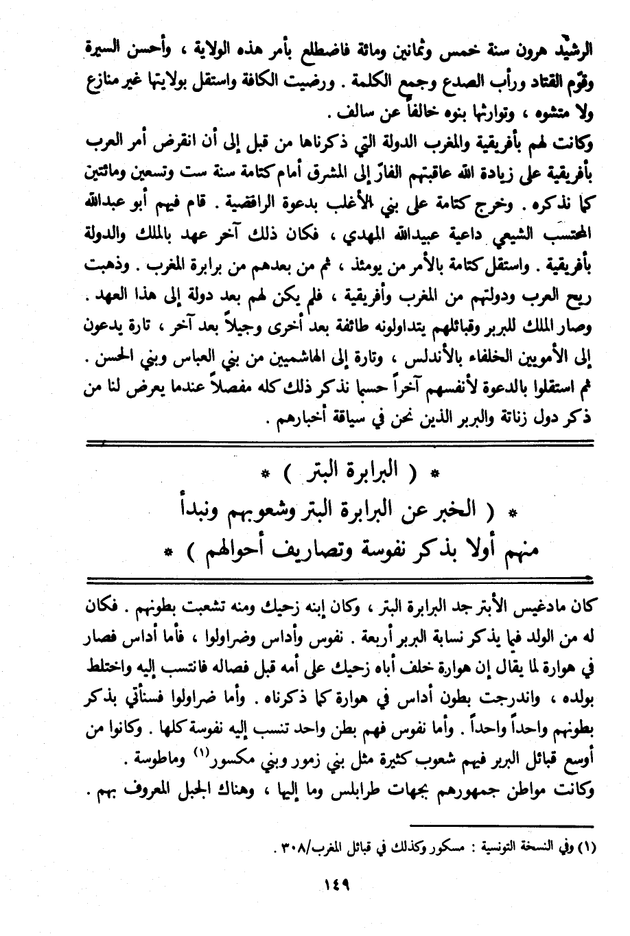(البرابرة البتر) (الخبر عن البرابرة البتر وشعوبهم ونبدأ منهم أولا بذكر نفوسة وتصاريف أحوالهم)