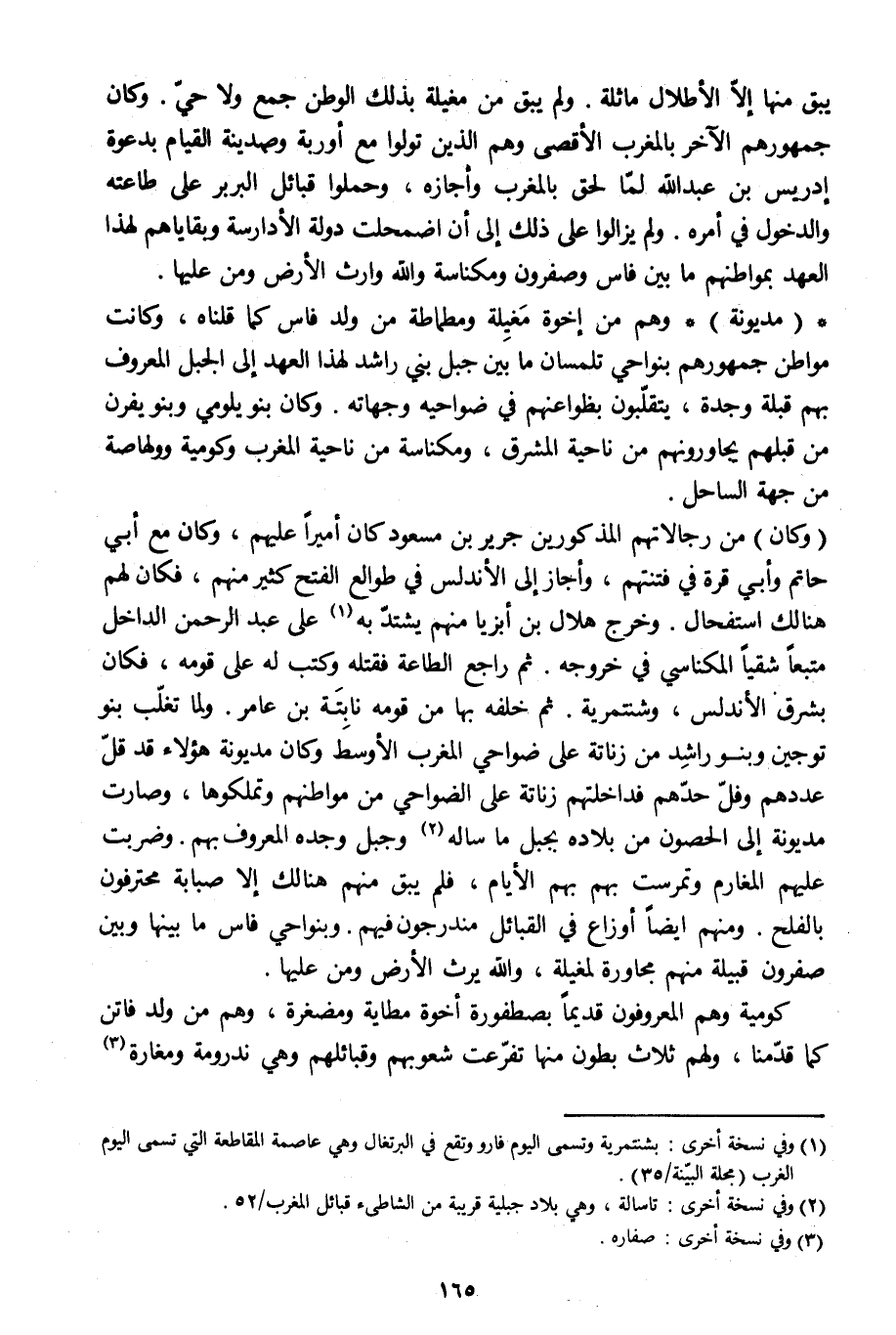 يبق منها إلّا الأطلال ماثلة. ولم يبق من مغيلة بذلك الوطن جمع ولا حيّ. وكان جمهورهم الآخر بالمغرب الأقصى وهم الذين تولوا مع أوربة وصدينة القيام بدعوة إدريس بن عبد الله لمّا لحق بالمغرب وأجازه، وحملوا قبائل البربر على طاعته والدخول في أمره. ولم يزالوا على ذلك إلى أن اضمحلت دولة الأدارسة وبقاياهم لهذا العهد بمواطنهم ما بين فاس وصفرون ومكناسة والله وارث الأرض ومن عليها.