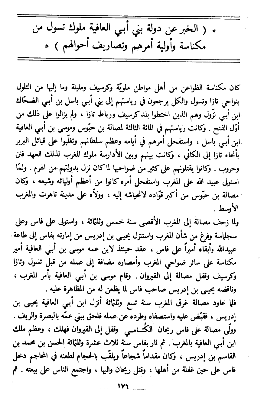 (الخبر عن دولة بني أبي العافية ملوك تسول من مكناسة وأولية أمرهم وتصاريف أحوالهم)