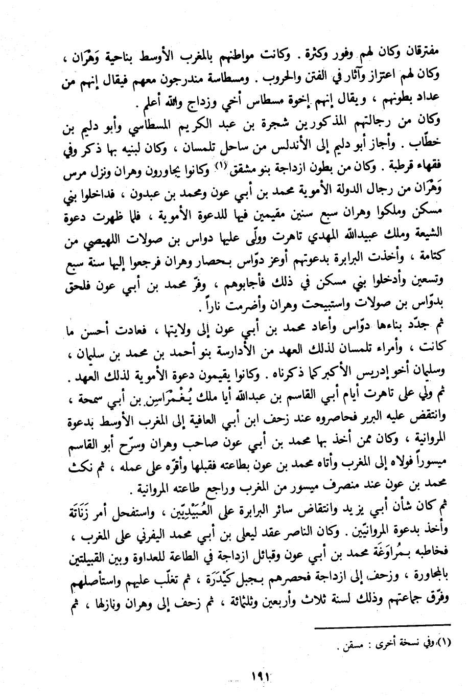 مفترقان وكان لهم وفور وكثرة. وكانت مواطنهم بالمغرب الأوسط بناحية وهران، وكان لهم اعتزاز وآثار في الفتن والحروب. ومسطاسة مندرجون معهم فيقال إنهم من عداد بطونهم، ويقال إنهم إخوة مسطاس أخي وزداج والله أعلم.